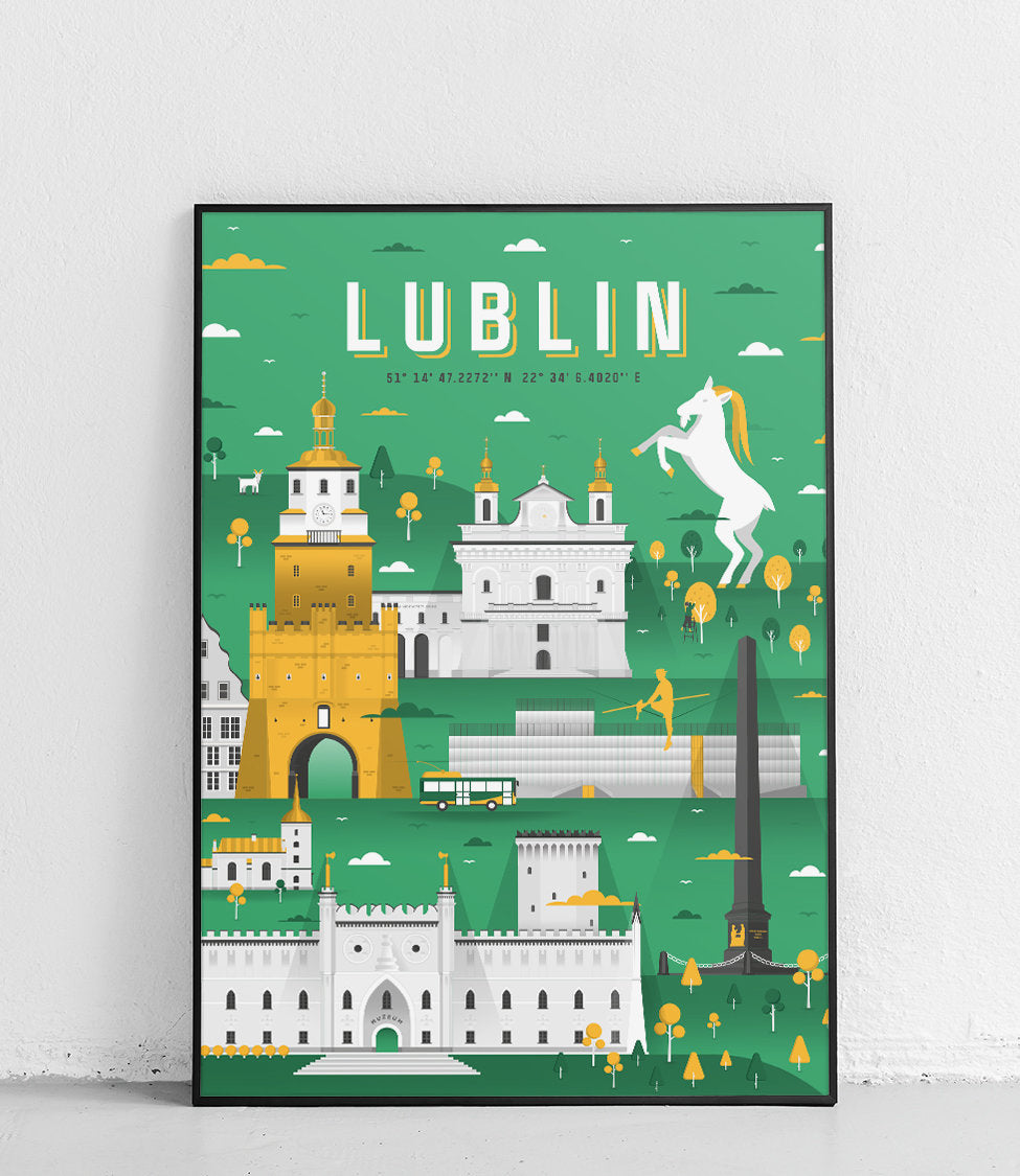 to wyjątkowy poster naszej serii Miasta Polski.Przedstawia przede wszystkim najważniejsze atrakcje Lublina, jednego z najstarszych miast w Polsce, jak Zamek Lubelski, Bramę Grodzką, Archikatedrę, czy Pomnik Unii Lubelskiej, które ukazane są na pierwszym planie grafiki.