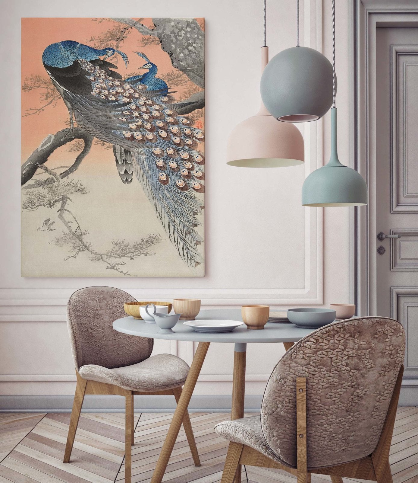 Dwa pawie na gałęzi - plakat