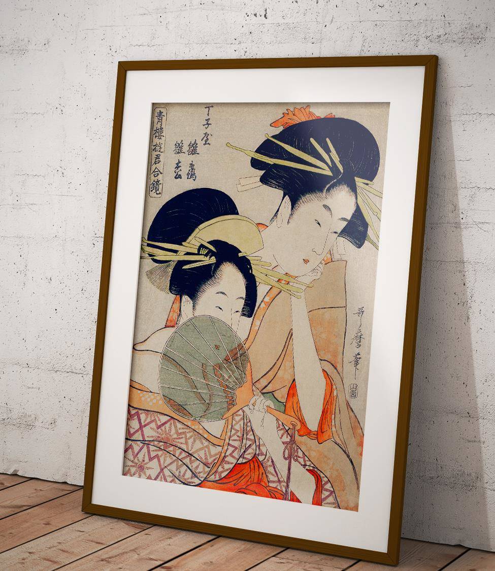 Portret kurtyzan trzymających wachlarz - piękny plakat przedstawiający japońskie kobiety o niezwykłej urodzie, trzymające wachlarze. Idealny do dekoracji wnętrz.