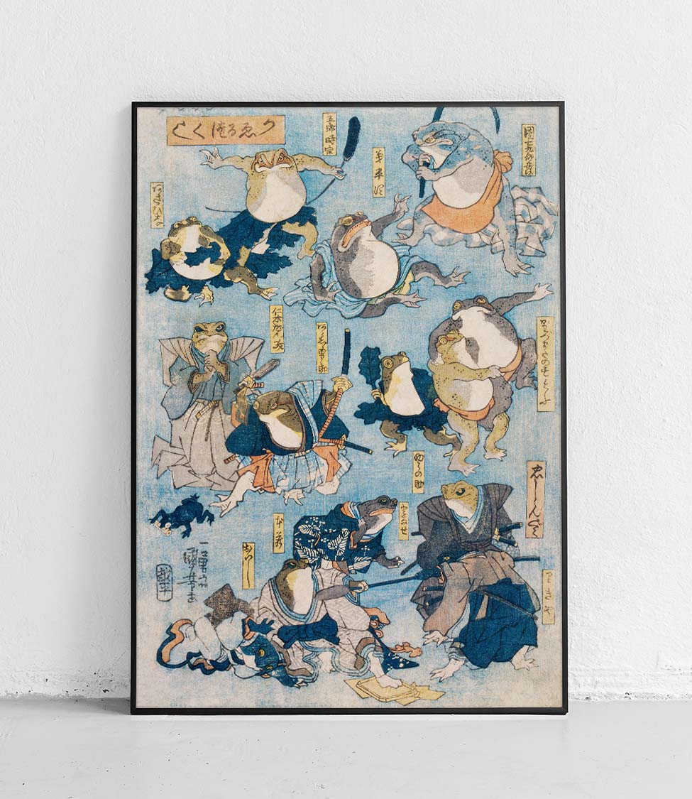 Słynni bohaterowie sceny Kabuki grani przez żaby - plakat