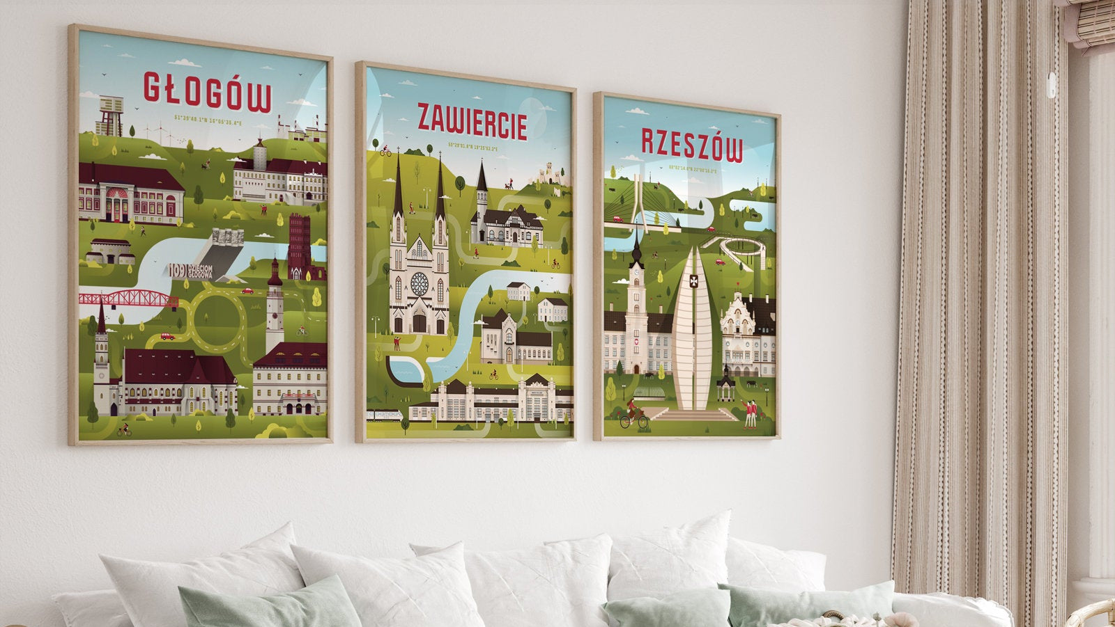 Plakat Zawiercie to wyjątkowy poster serii Miasta Polski zdolnego artysty, Roberta Kostrzewy, który wykonał go dla nas na specjalne zamówienie.