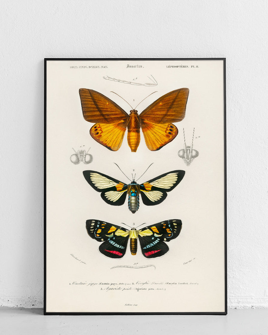 Kolekcja „Motyle” to delikatność natury uchwycona w klasycznych ilustracjach Charlesa d'Orbigny. Kolorowe skrzydła, precyzyjne detale i botaniczny styl sprawiają, że każdy plakat jest małym dziełem sztuki. Idealne do wnętrz w stylu vintage, boho lub romantycznym – dla tych, którzy kochają przyrodę i subtelną dekorację.