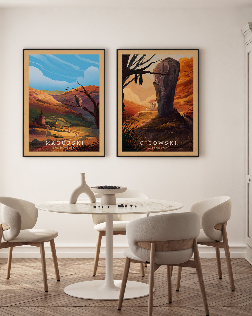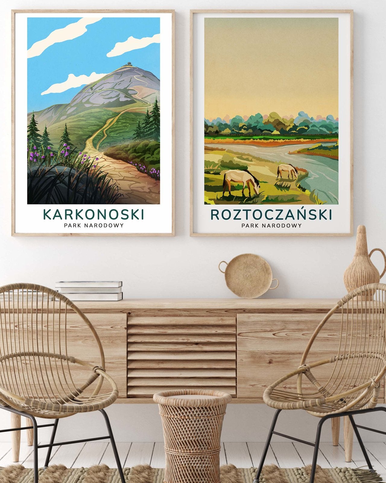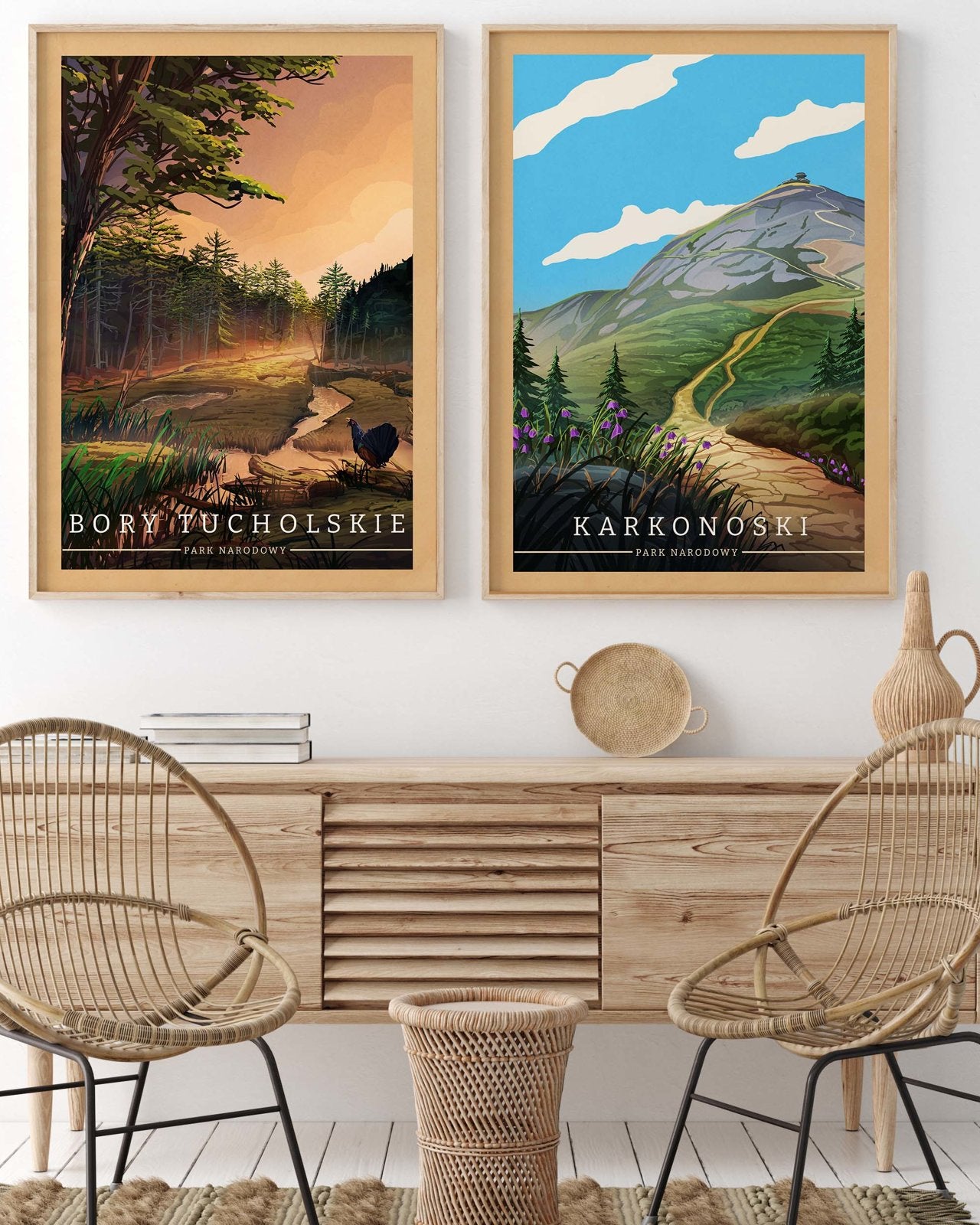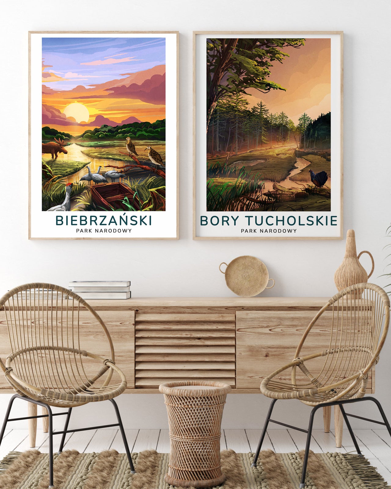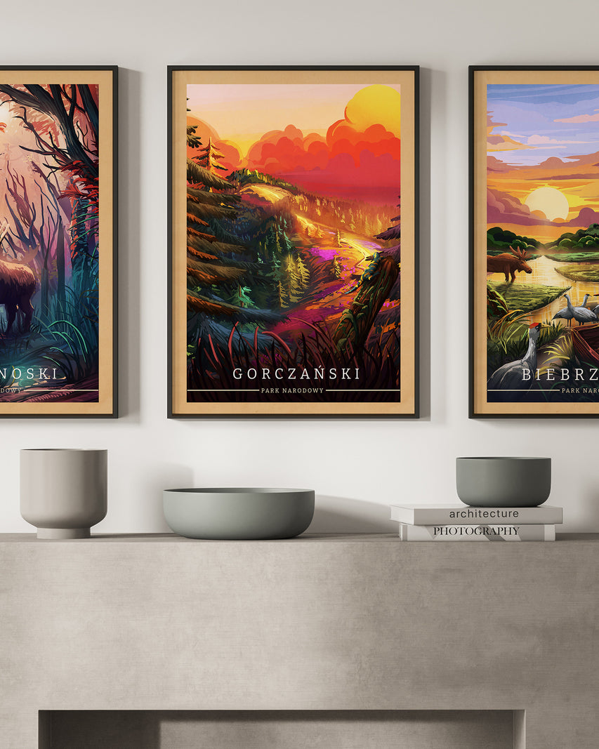 Kolekcja „Polskie Parki Narodowe” to kompletna seria plakatów autorstwa Macieja Ptasińskiego, przedstawiająca wszystkie 23 parki narodowe w Polsce. Każdy plakat dostępny jest w dwóch wersjach – nowoczesnej i vintage – pozwalając dobrać styl do każdego wnętrza. To hołd dla polskiej przyrody, przedstawiony w przemyślanej, graficznej formie.