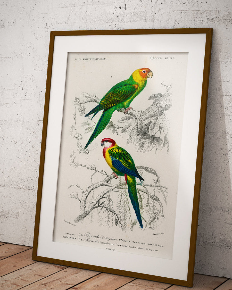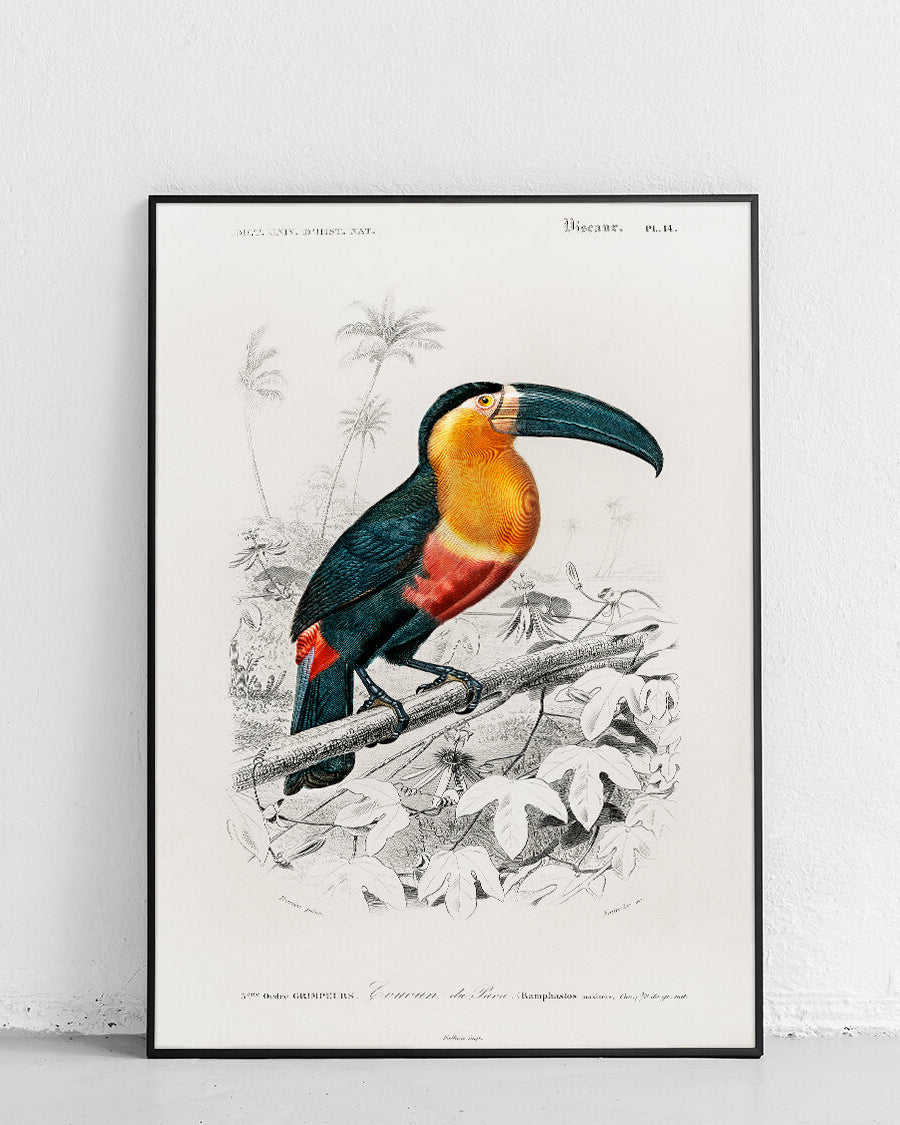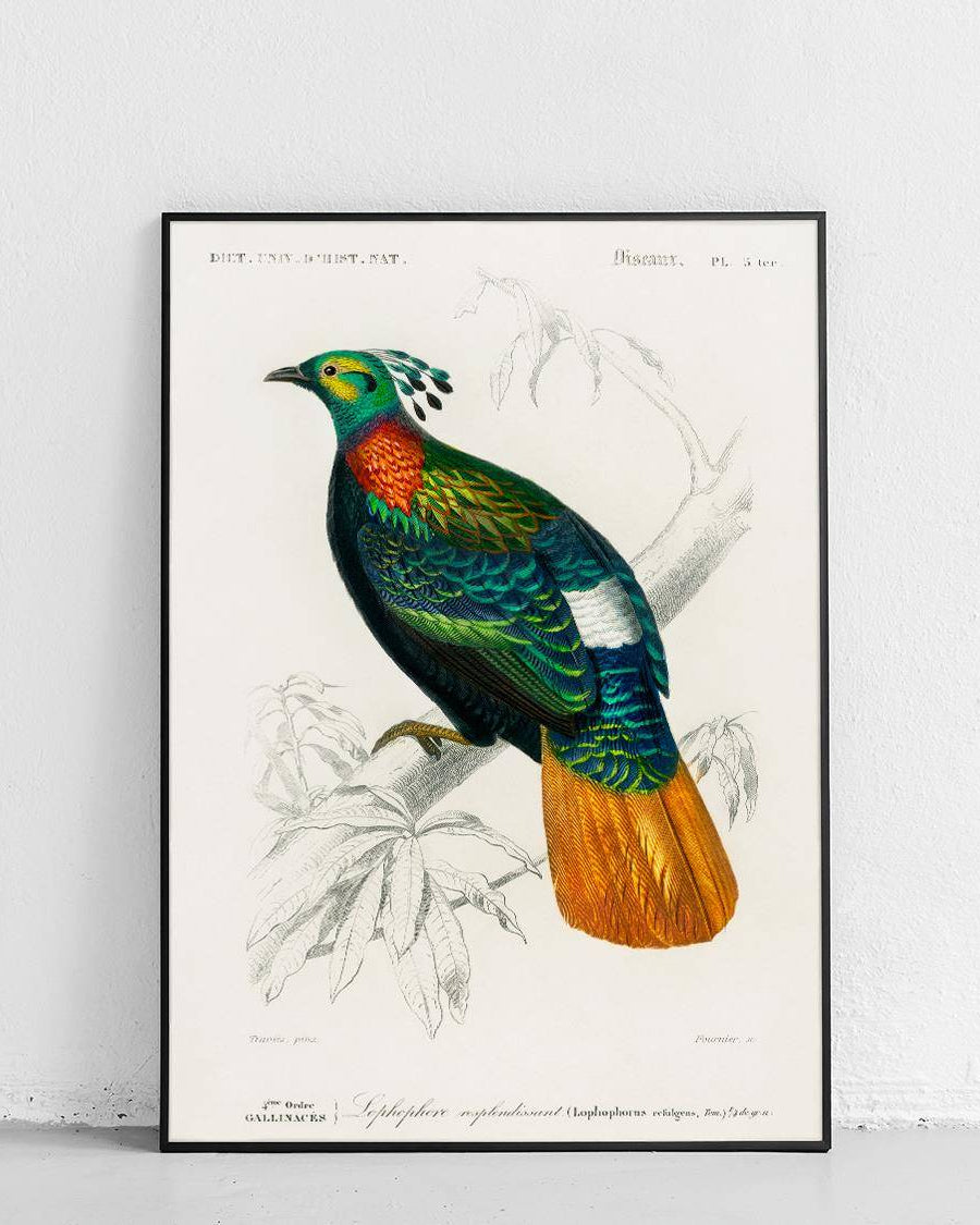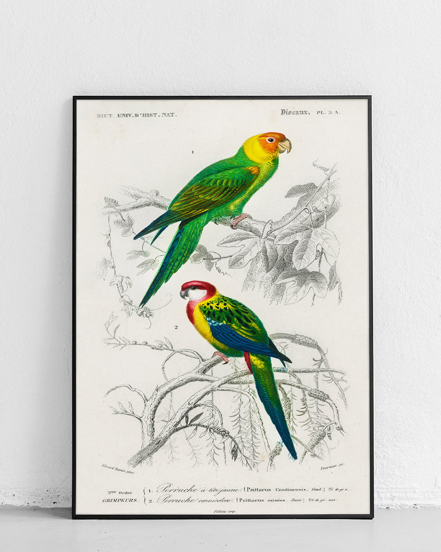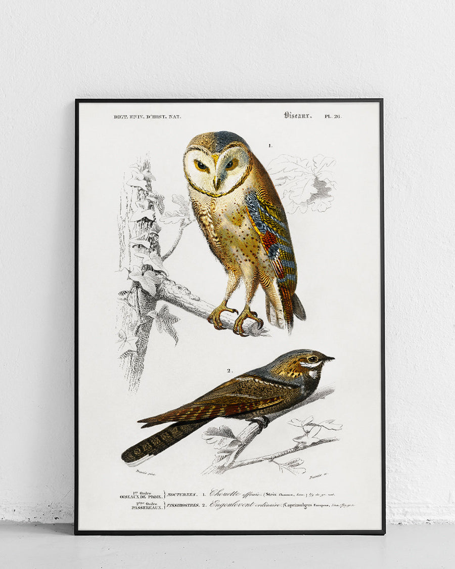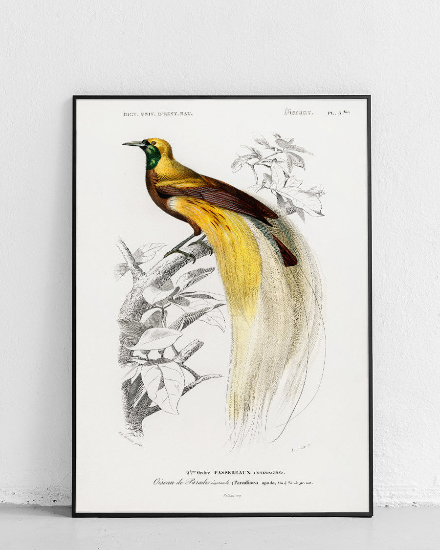 Kolekcja „Ptaki” prezentuje wybitne ilustracje dwóch znanych przyrodników – Charlesa d'Orbigny oraz François Levaillanta. Ich prace stanowią fundament nowoczesnej ornitologii i zachwycają zarówno precyzją naukową, jak i walorami artystycznymi. Plakaty w tej serii to nie tylko wyjątkowa dekoracja, ale także ukłon w stronę historii ilustracji przyrodniczej.
