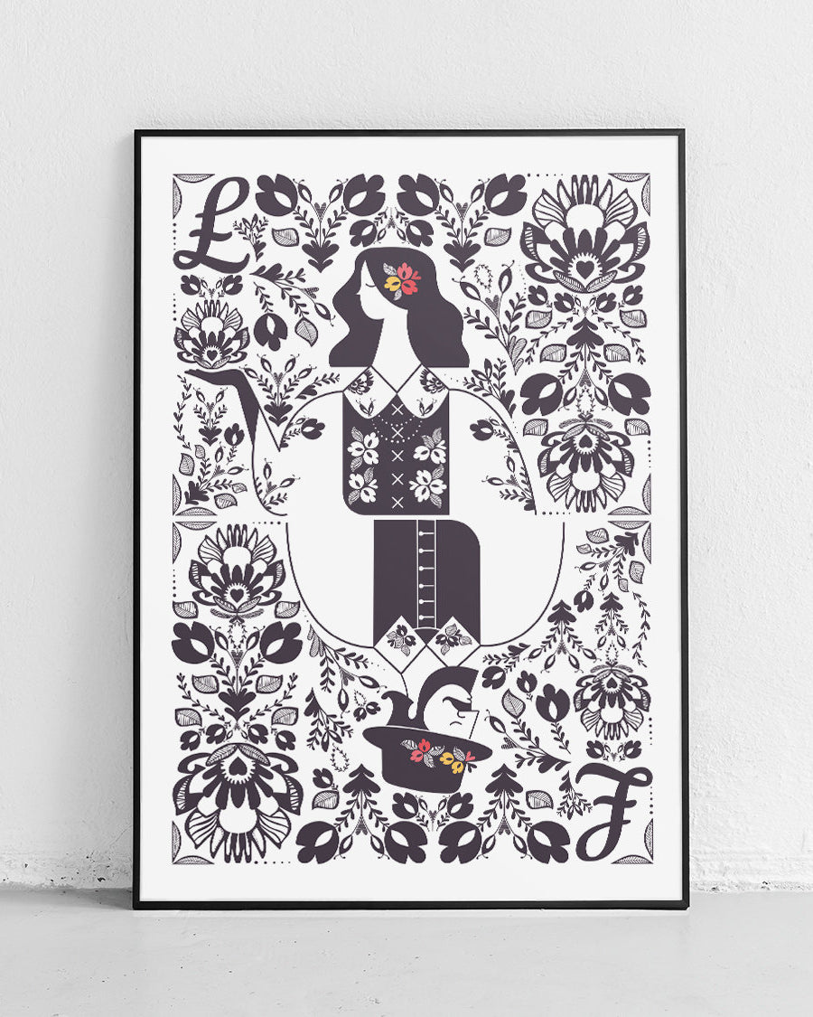 Kolekcja „Stroje ludowe” prezentuje polskie stroje ludowe z różnych grup etnograficznych, w tym charakterystyczne wzory i stroje z Małopolski (Krakowski), Wielkopolski, Kaszub, Łowicza oraz Podhala. Każdy plakat to barwna i szczegółowa ilustracja tradycyjnego ubioru, który odzwierciedla bogactwo polskiej kultury ludowej. Idealne dekoracje i inspiracja dla miłośników folkloru.