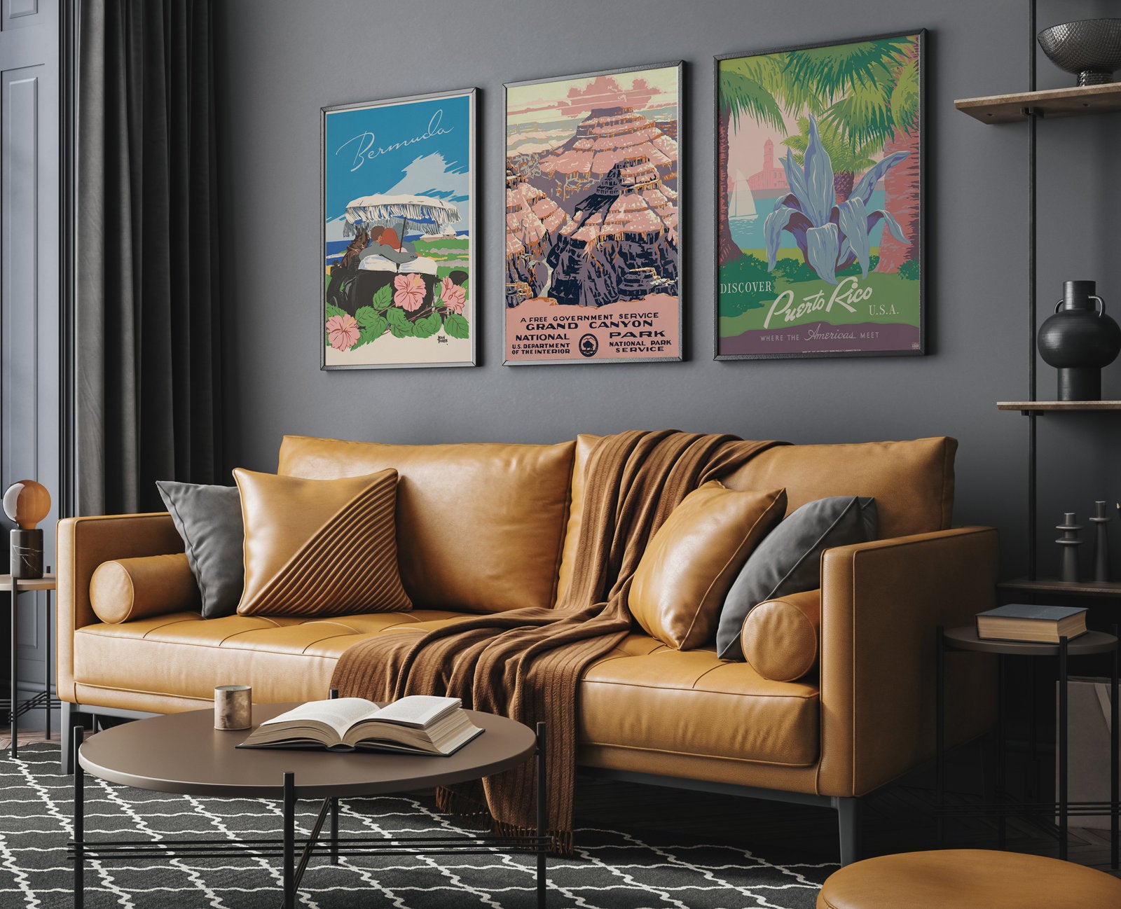 Ten oryginalny plakat z serii "Podróże" pochodzi ze zbiorów Biblioteki Kongresu Stanów Zjednoczonych. Linie kolejowe, kurorty, hotele i późniejsze linie lotnicze używały plakatu jako formy reklamy aby kusić podróżnych scenami przepychu, piękna i przygody.