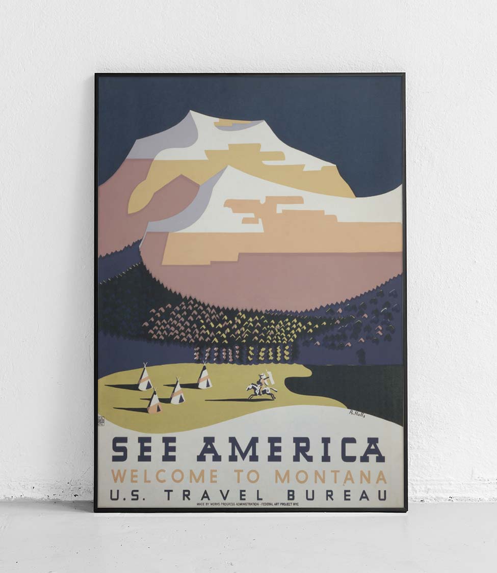 Ten oryginalny plakat z serii "Podróże" pochodzi ze zbiorów Biblioteki Kongresu Stanów Zjednoczonych. Linie kolejowe, kurorty, hotele i późniejsze linie lotnicze używały plakatu jako formy reklamy aby kusić podróżnych scenami przepychu, piękna i przygody.