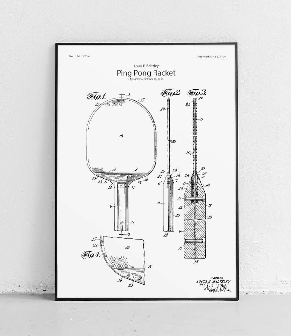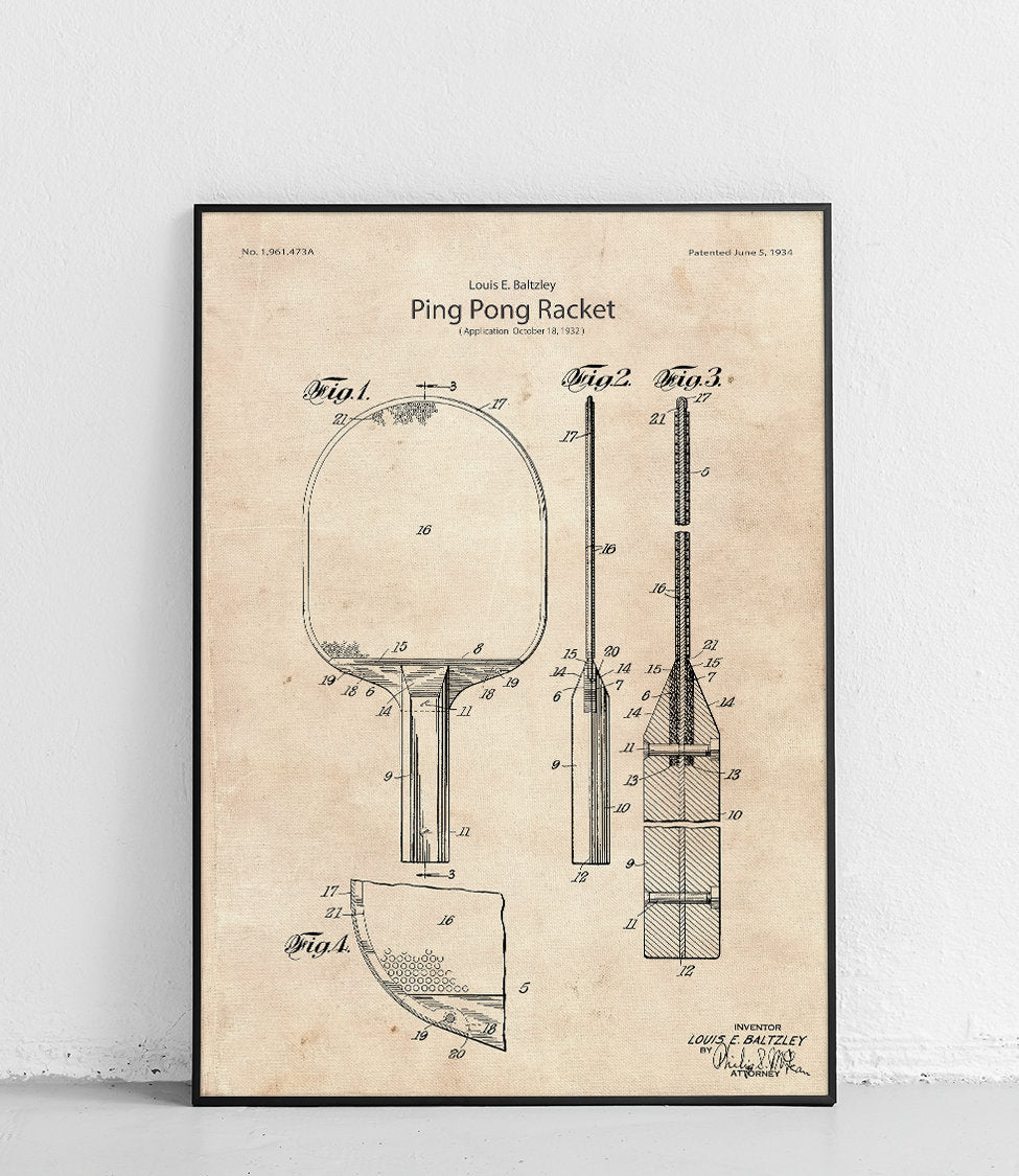 Ein Poster, das einen Tischtennisschläger zeigt. Perfekt für Sportliebhaber und als Raumdekoration.