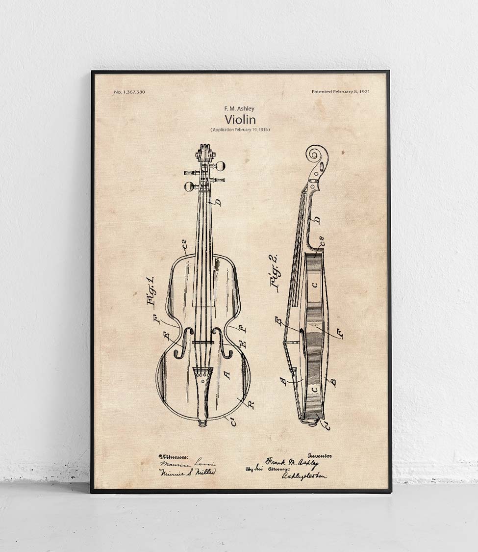 Ein wunderschönes Poster mit der Abbildung einer Geige, perfekt für Liebhaber klassischer Musik und Streichinstrumente.