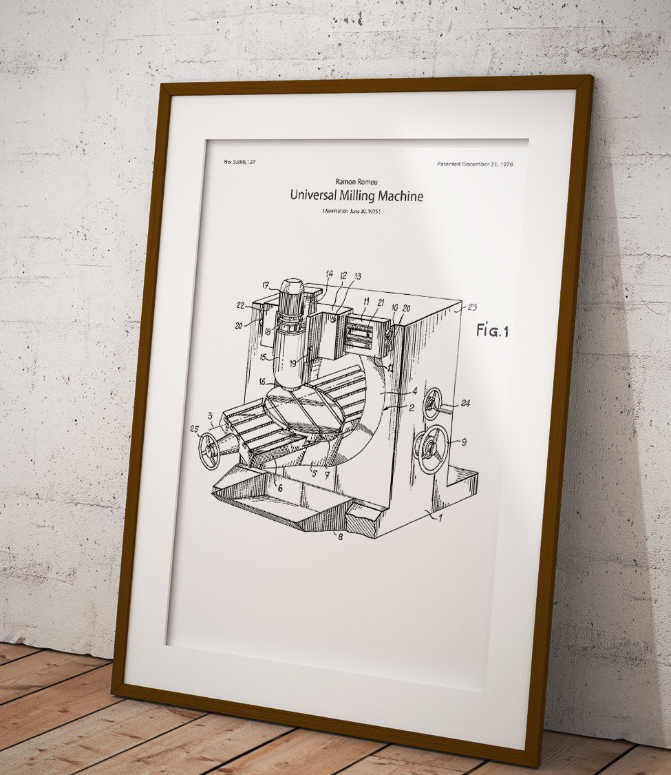 Ein Poster mit der Abbildung einer Fräsmaschine – perfekt für Liebhaber von Mechanik und Industrie.