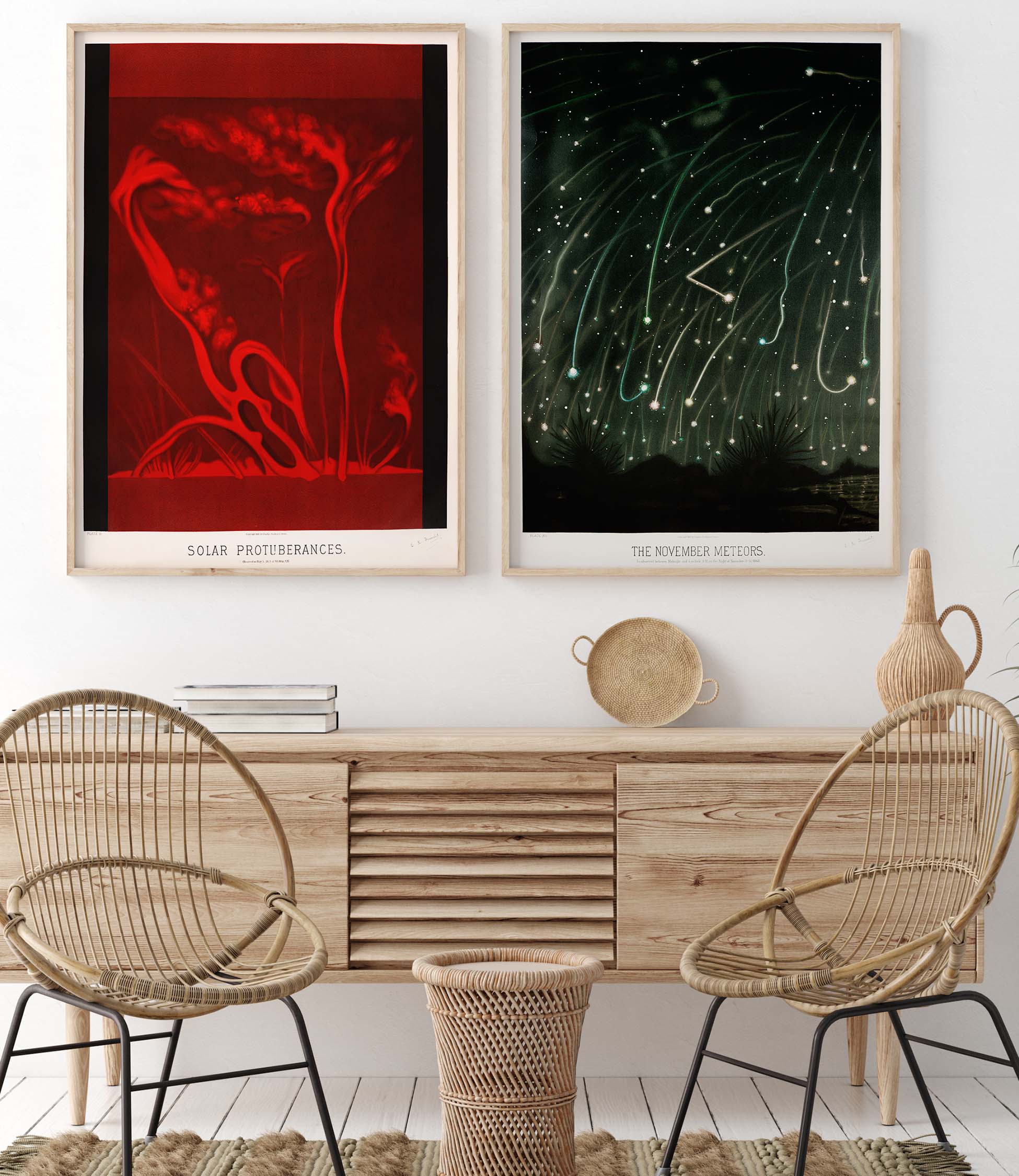 Ein Poster, das Protuberanzen auf der Sonne zeigt. Perfekt für Astronomie- und Weltraumbegeisterte.