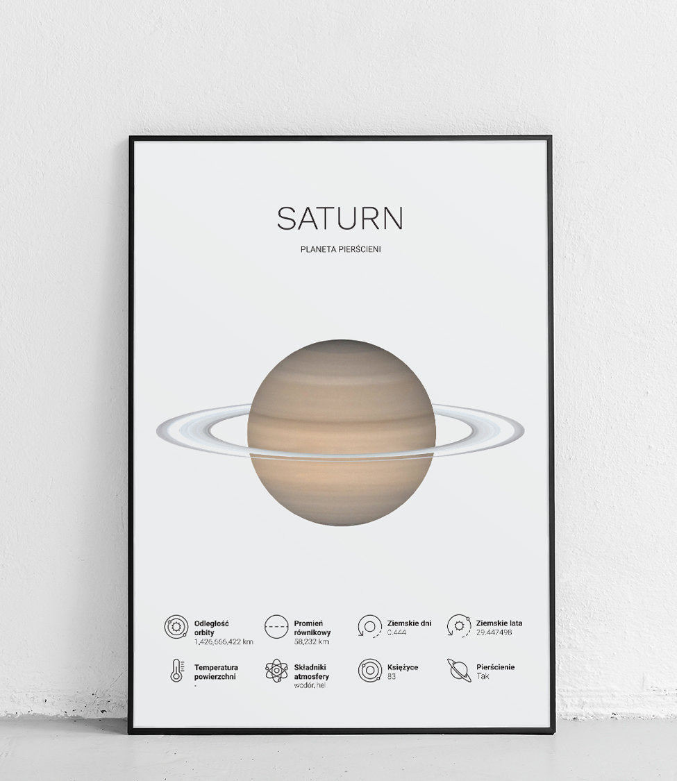 Ein Poster, das Saturn zeigt – einen der Planeten des Sonnensystems. Perfekt für Astronomie- und Weltraumbegeisterte.