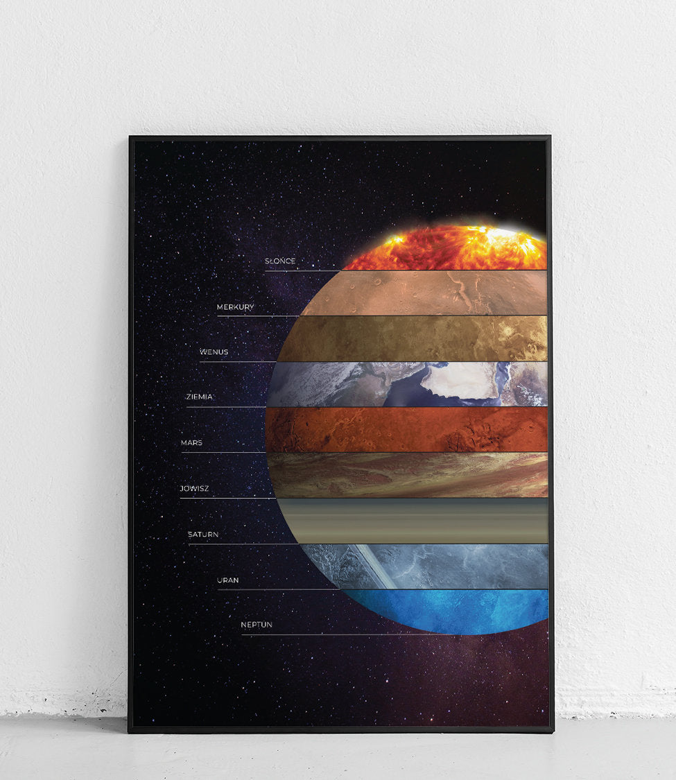 Ein Poster, das das Sonnensystem in einer vertikalen Ansicht zeigt. Perfekt für Astronomie- und Weltraumbegeisterte.