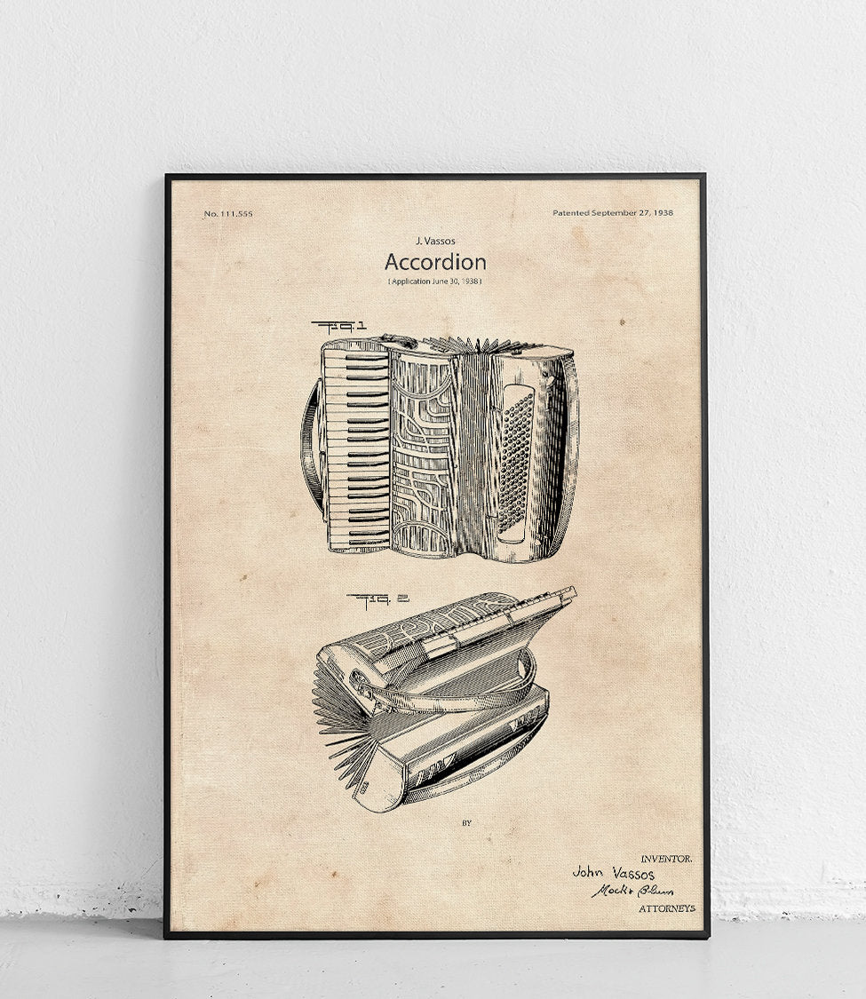 Ein wunderschönes Poster mit einem Akkordeon, perfekt für Liebhaber von Musik und Instrumenten. Holen Sie es sich noch heute und schmücken Sie Ihr Interieur!
