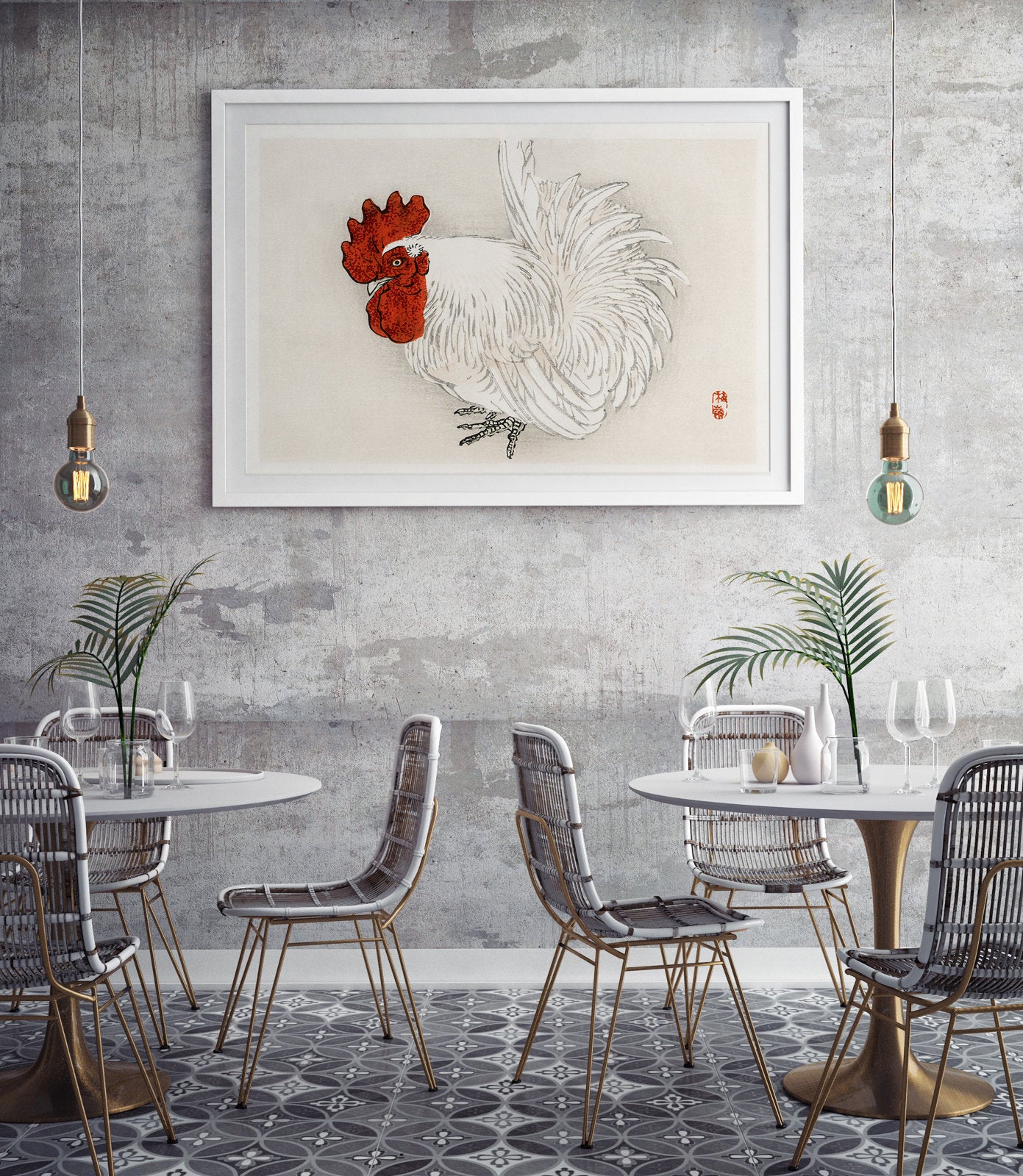 Japanisches Zwerghuhn – ein farbenfrohes Poster eines wunderschönen Vogels aus der Hühnerfamilie. Perfekt für Liebhaber der Natur und exotischer Tiere.