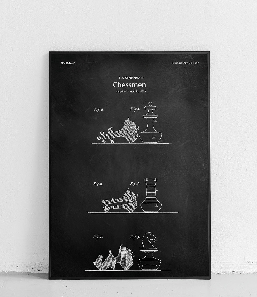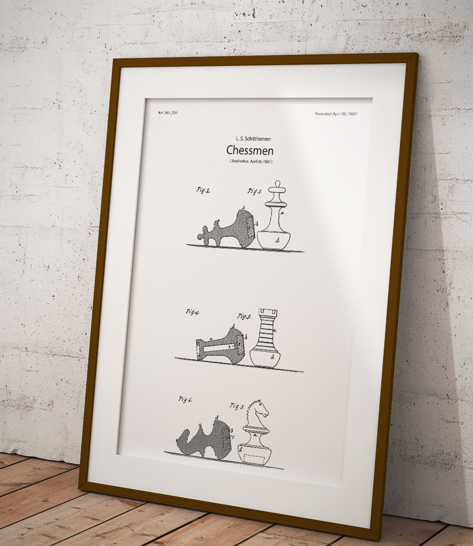 Ein Poster mit Schachfiguren im minimalistischen Stil. Perfekt für Schachliebhaber und als Dekoration für jeden Raum.