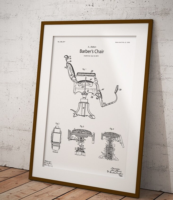 Poster mit der Abbildung eines stilvollen Friseurstuhls, ideal für Schönheits- und Friseursalons.