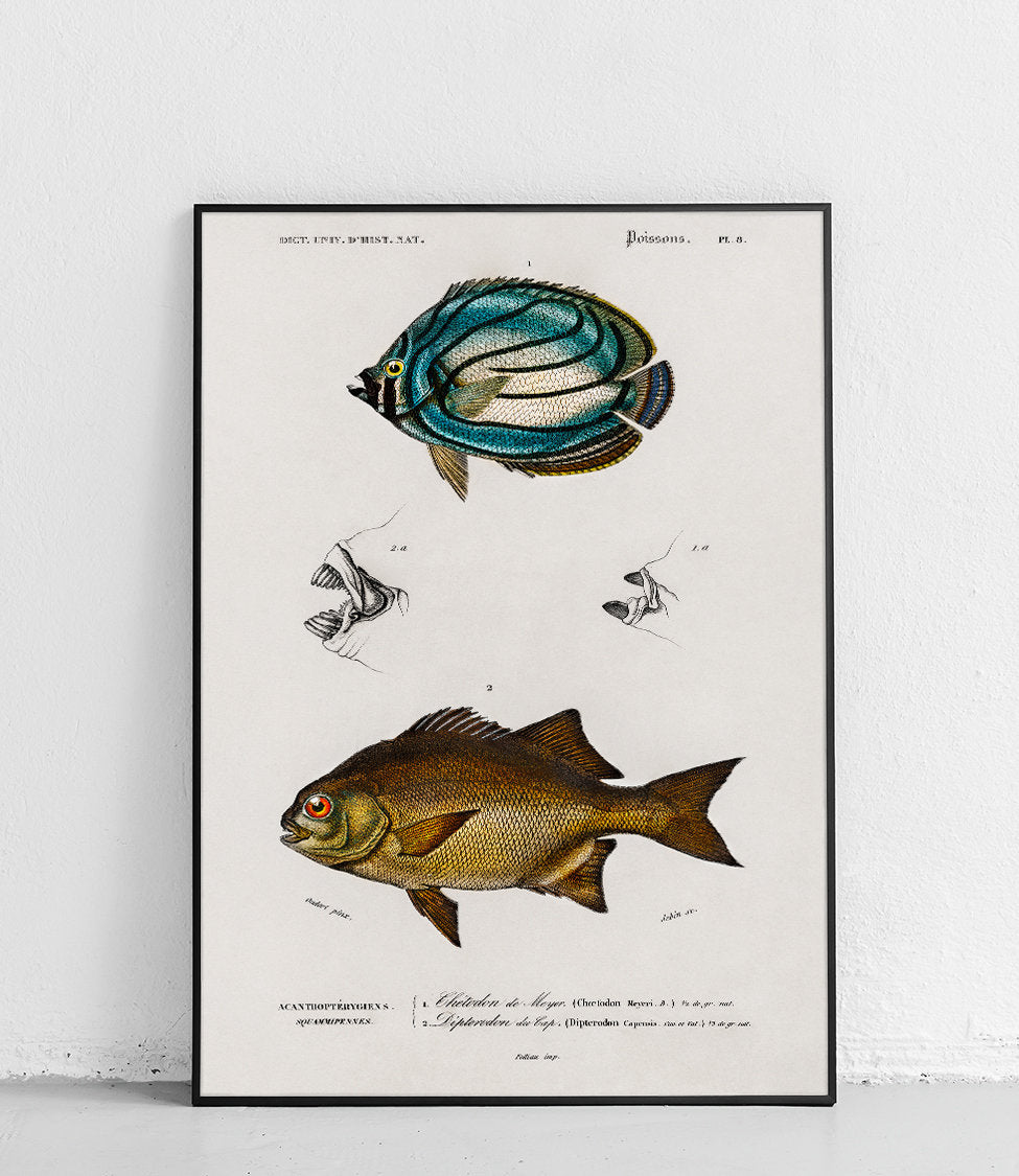 Ein Poster von Galjoen und Chaetodon meyeri, perfekt für Tier- und Meeresliebhaber.