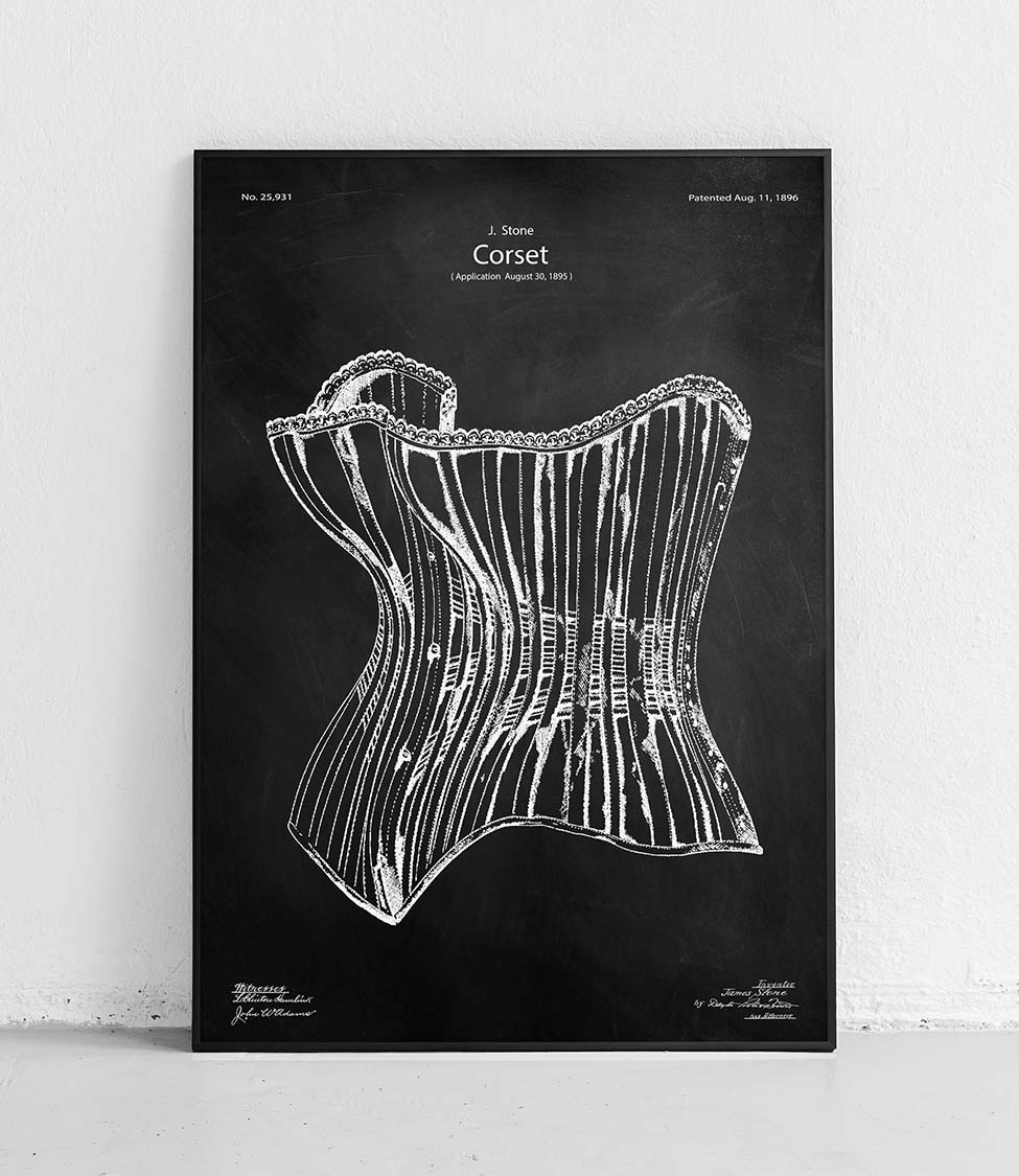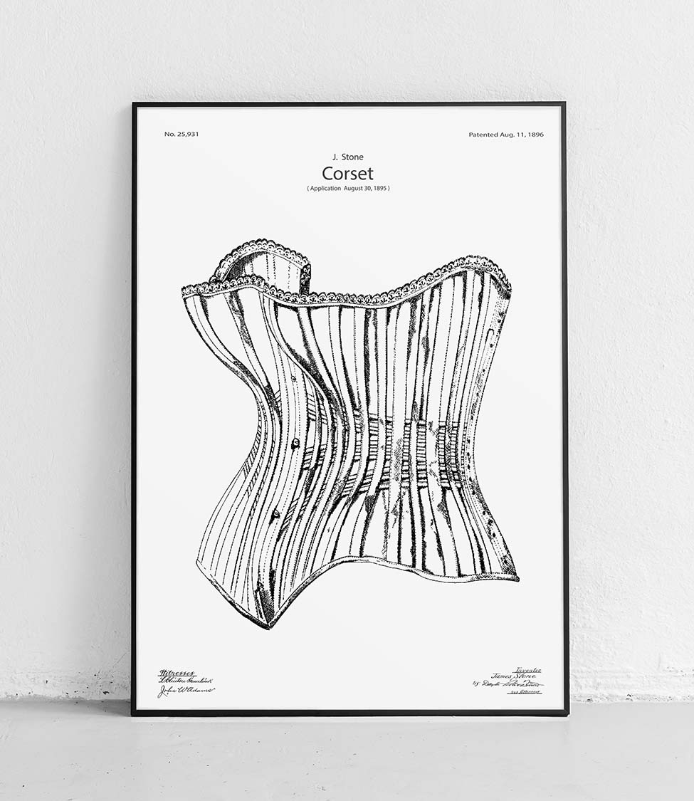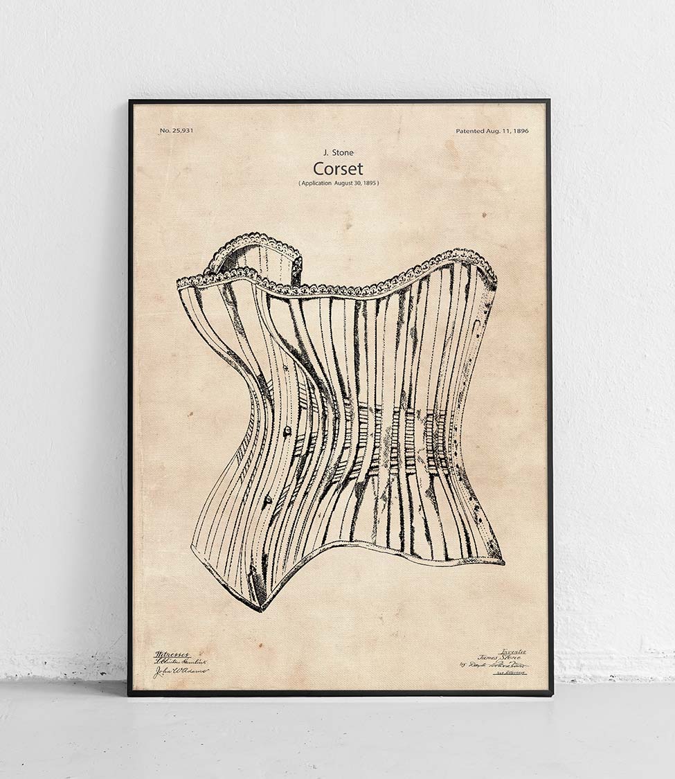 Wunderschönes Poster, das ein stylisches Korsett zeigt. Perfekt für Mode- und Geschichtsliebhaber. Eine perfekte Ergänzung für jedes Interieur.