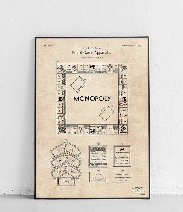 Ein Poster, das das Kultspiel Monopoly zeigt. Perfekt für Brettspielliebhaber und Nostalgiker.