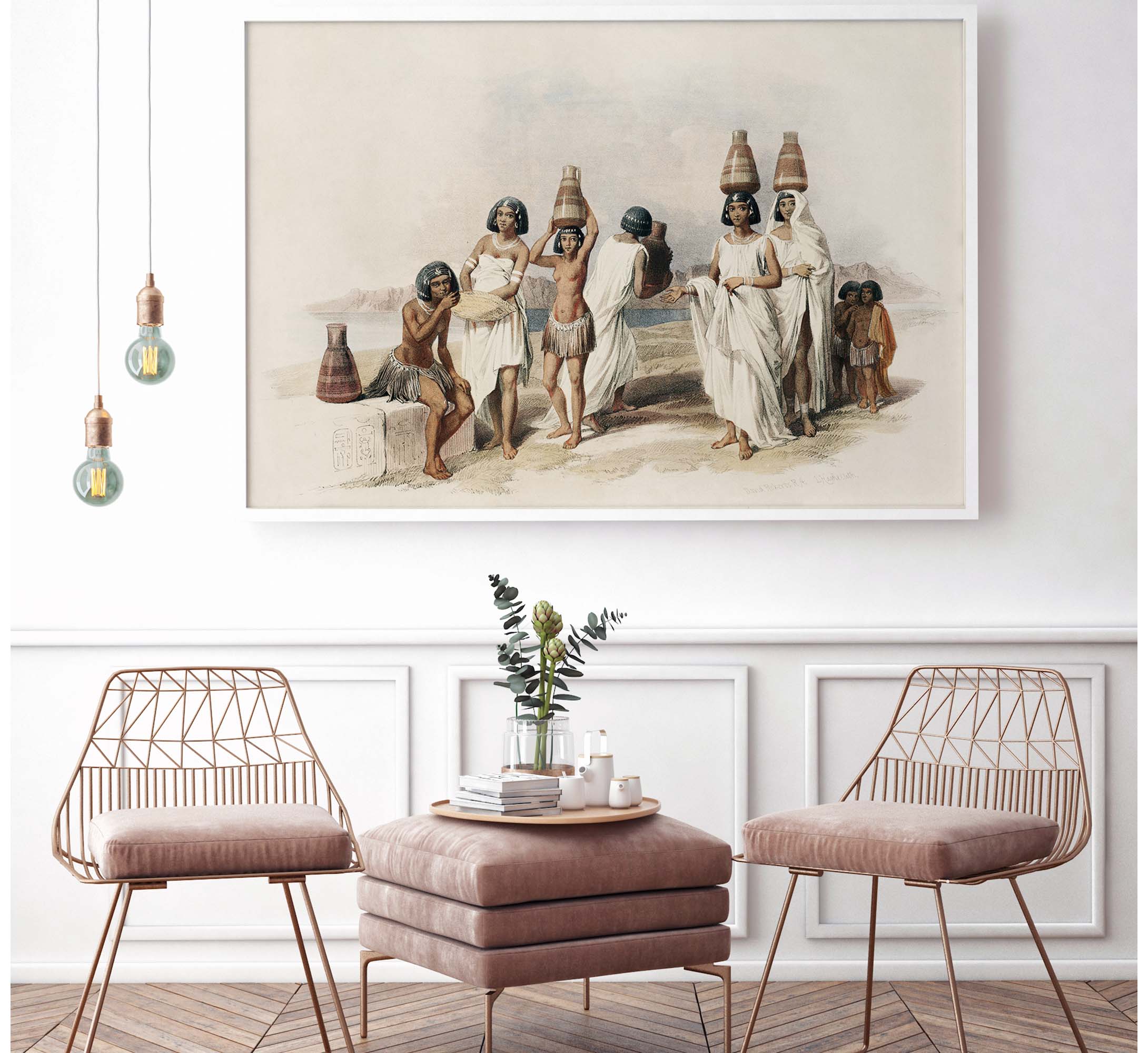 Die beigefügte Grafik zeigt „Frauen von Nubien vor Gericht am Nil“ von David Roberts (1796–1864), einem schottischen orientalistischen Maler und Mitglied der Royal Academy of Arts.