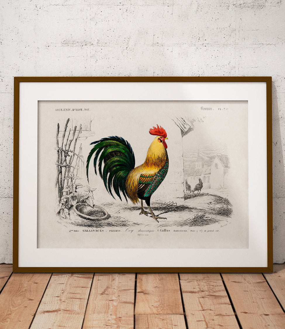 Ein farbenfrohes Poster eines Hahns, perfekt für Tierliebhaber und zur Dekoration Ihres Zuhauses.