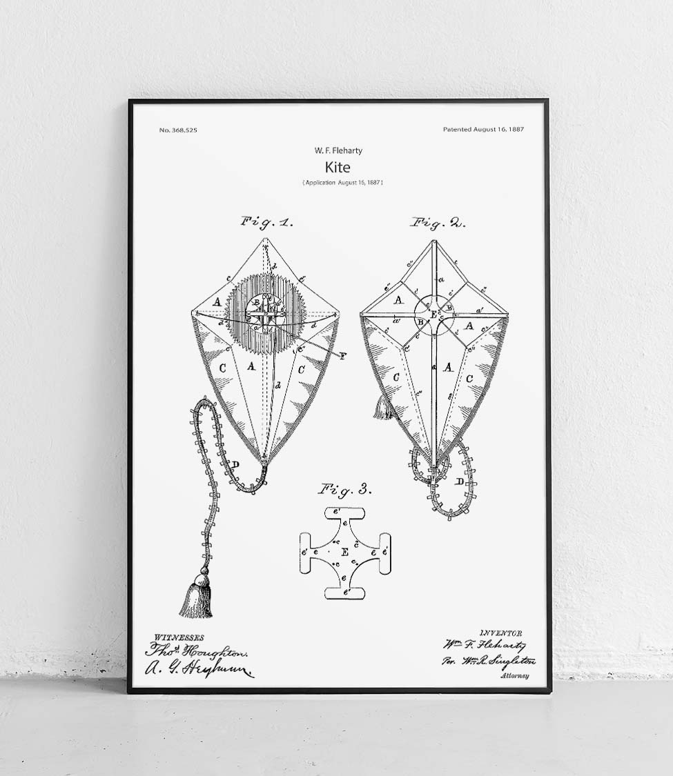 Schönes Poster mit einem bunten Drachen am Himmel. Perfekt für Liebhaber von Extremsportarten und Urlaubserinnerungen.