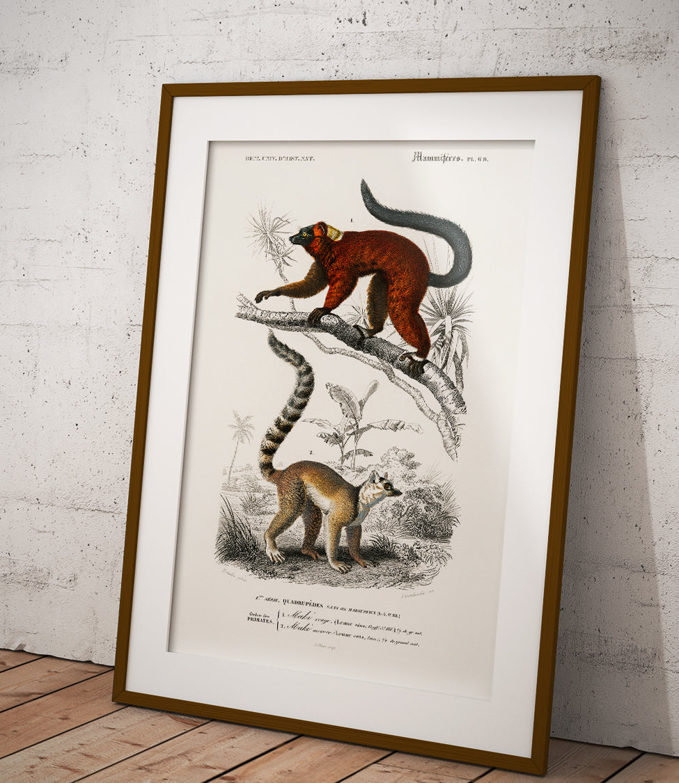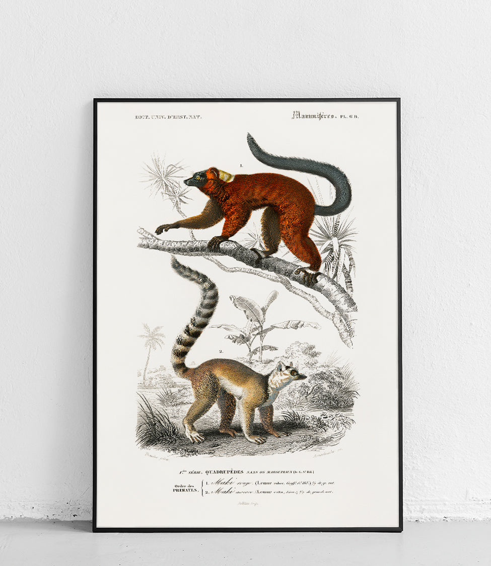 Ein wunderschönes Poster von Lemuren, perfekt für Tier- und Naturliebhaber. Entworfen von Charles d'Orbigny, atemberaubend in Farbe und Detail.