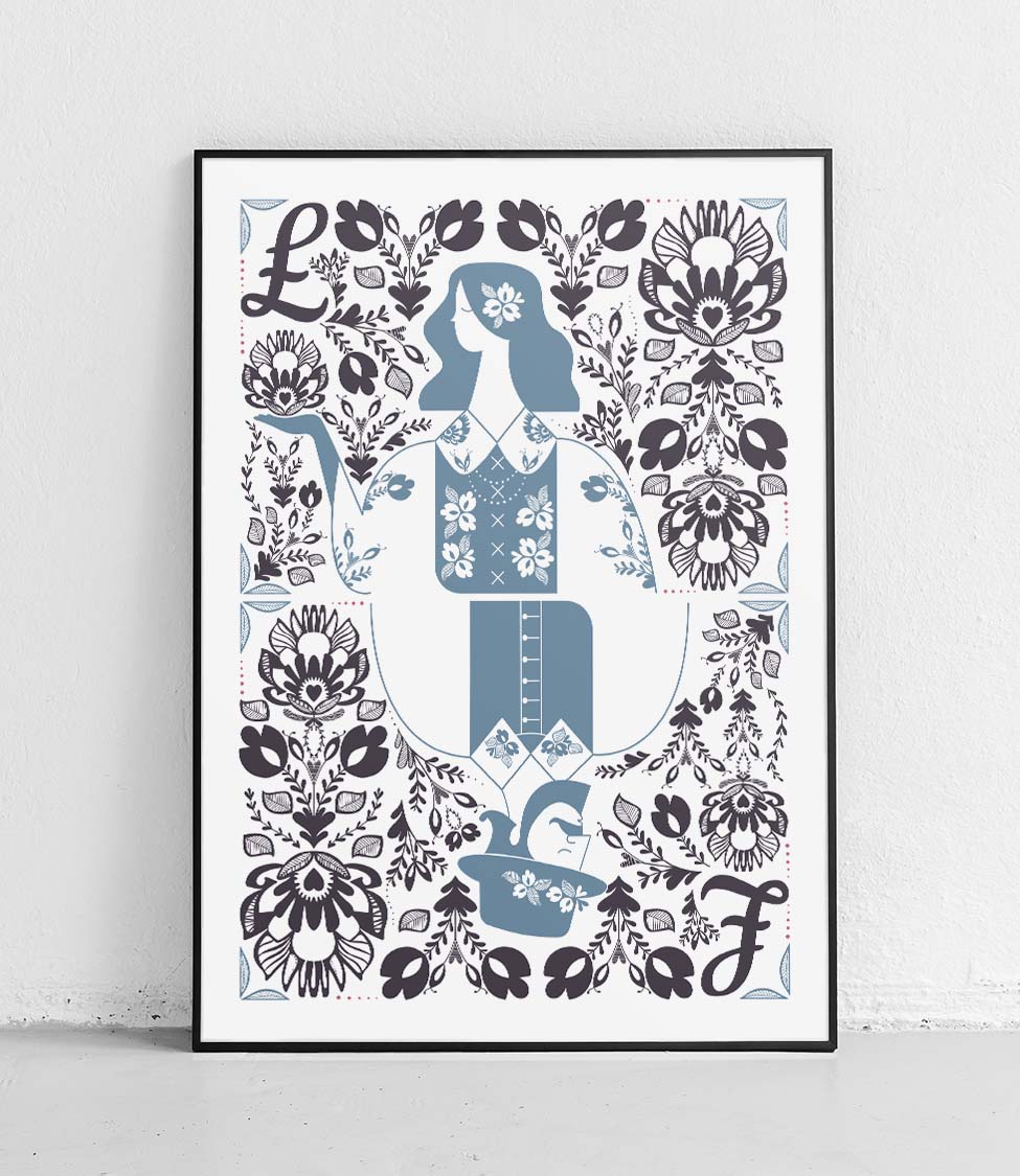 Dieses Poster zeigt das Jagdmuster, auch als Fürstenmuster bekannt, der Menschen, die die fruchtbaren Ländereien Masowiens im Bzura-Tal bewohnen.