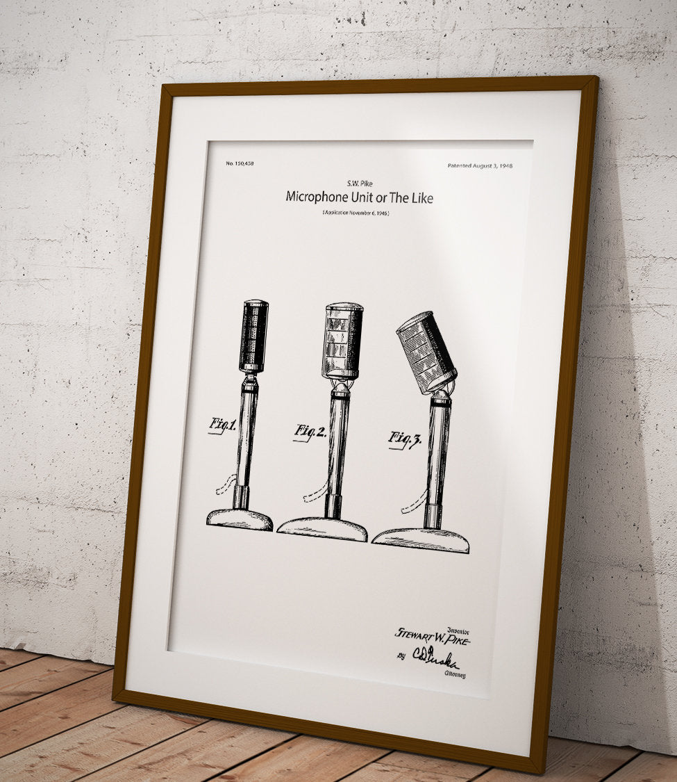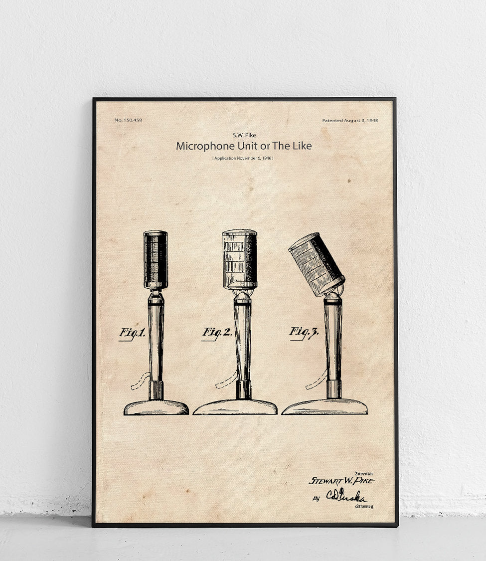Ein Poster mit einem klassischen Mikrofon, perfekt für Musik- und Technikliebhaber. Die perfekte Ergänzung für die Inneneinrichtung eines Aufnahmestudios oder Musikzimmers.