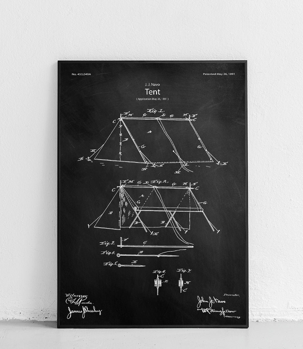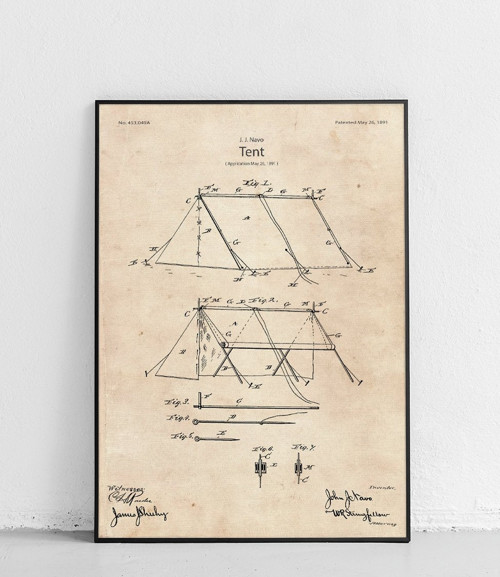 Plakat mit einer Reproduktion des Zeltpatents von John Joseph Navo.
