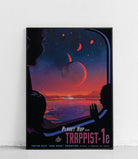 Dieses Originalposter stammt aus der „Visions of the Future“-Reihe der NASA. Es stellt die Idee der Raumfahrt und ferner Planeten dar.
