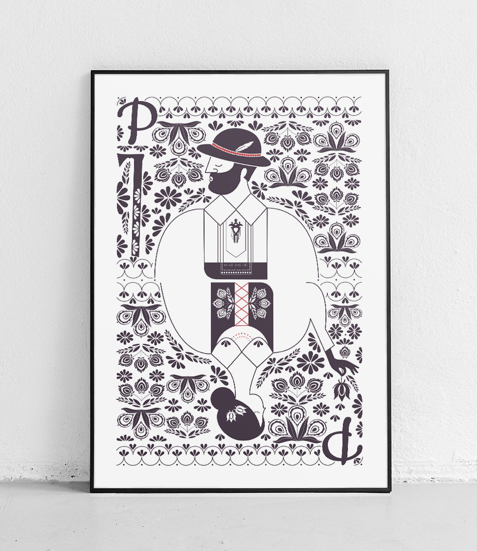 Dieses Poster zeigt die Podhale-Tracht, die Tracht der Hochländer, die im Podhale-Gebiet im polnischen Teil des Tatra-Gebirges leben.