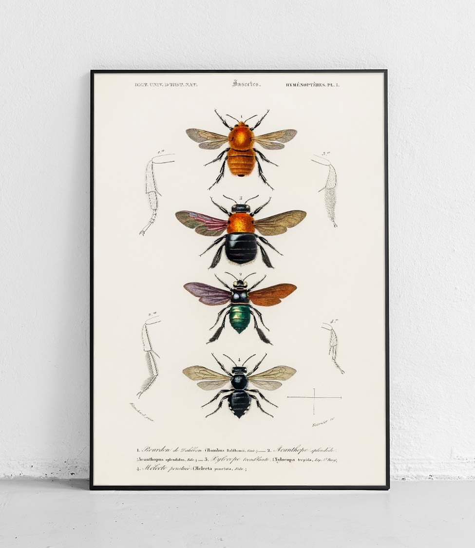 Poster mit süßen Bienen von Charles d'Orbigny. Perfekt für Natur- und Tierliebhaber.