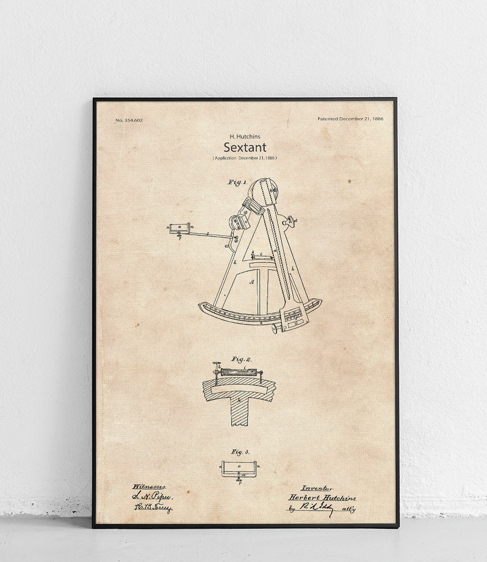 Ein wunderschönes Poster eines Sextanten, perfekt für Liebhaber des Segelns und der Geschichte der Navigation.