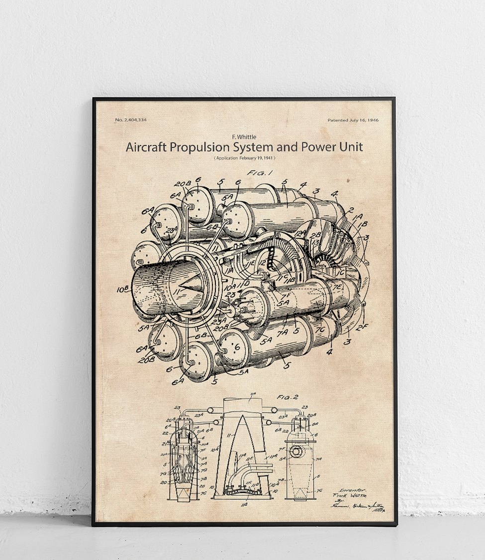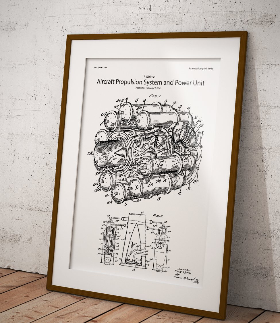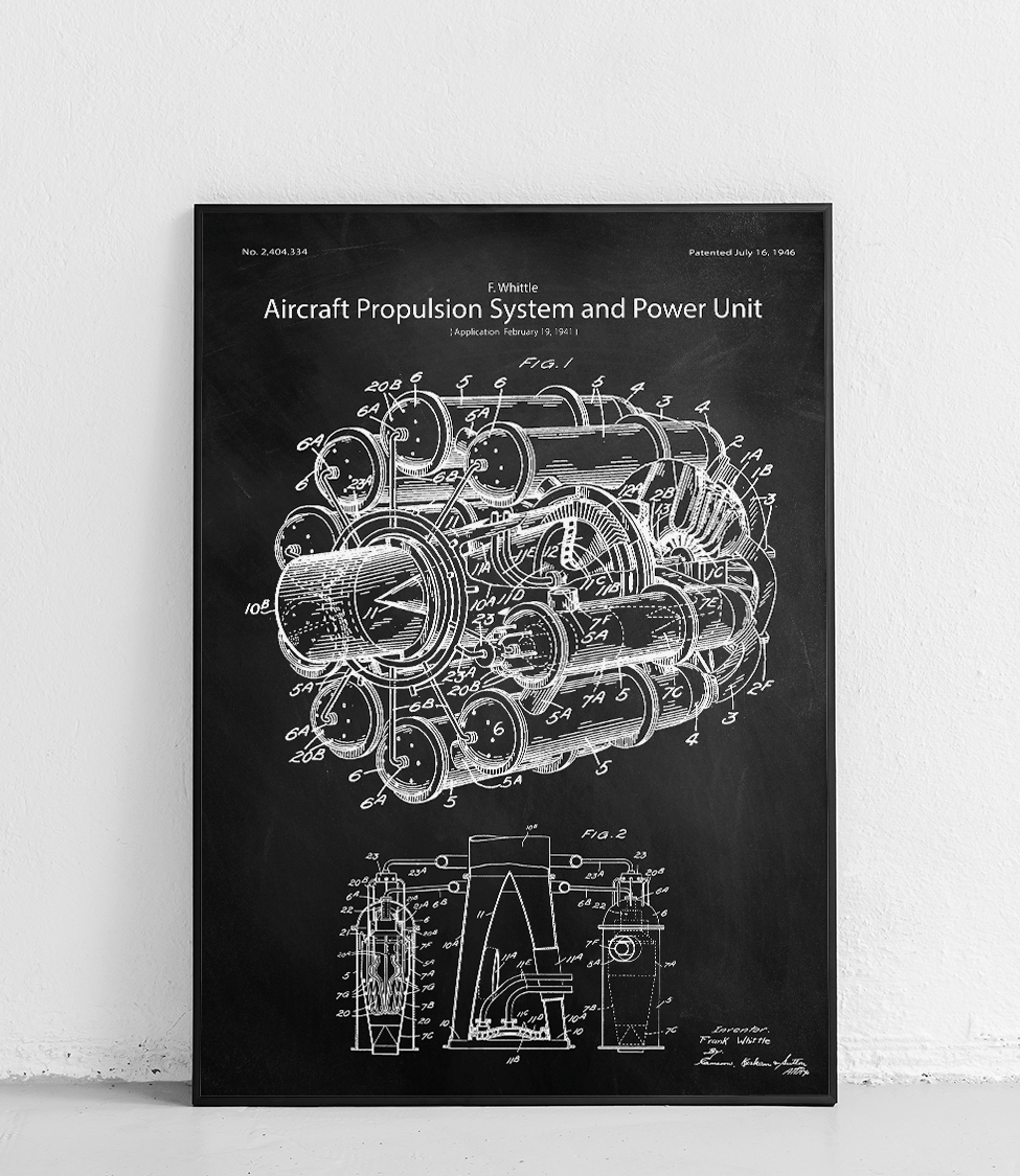 Ein Poster mit der Abbildung eines Turbojet-Triebwerks, perfekt für Luftfahrt- und Technikbegeisterte.
