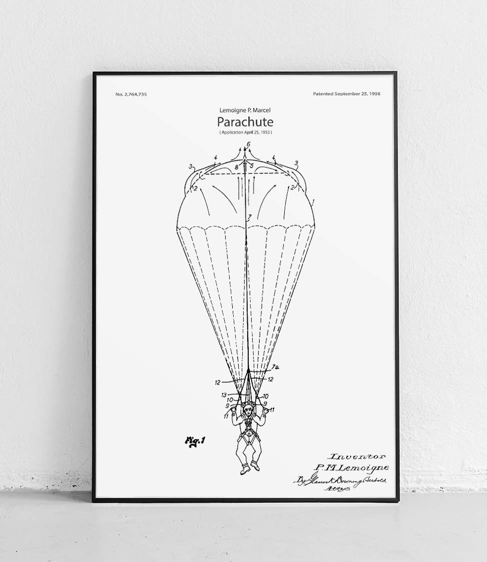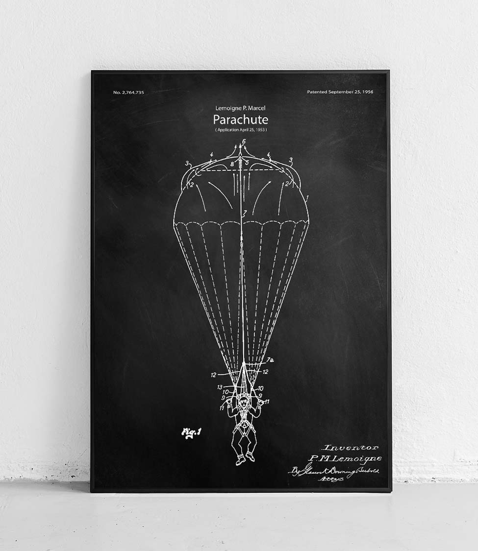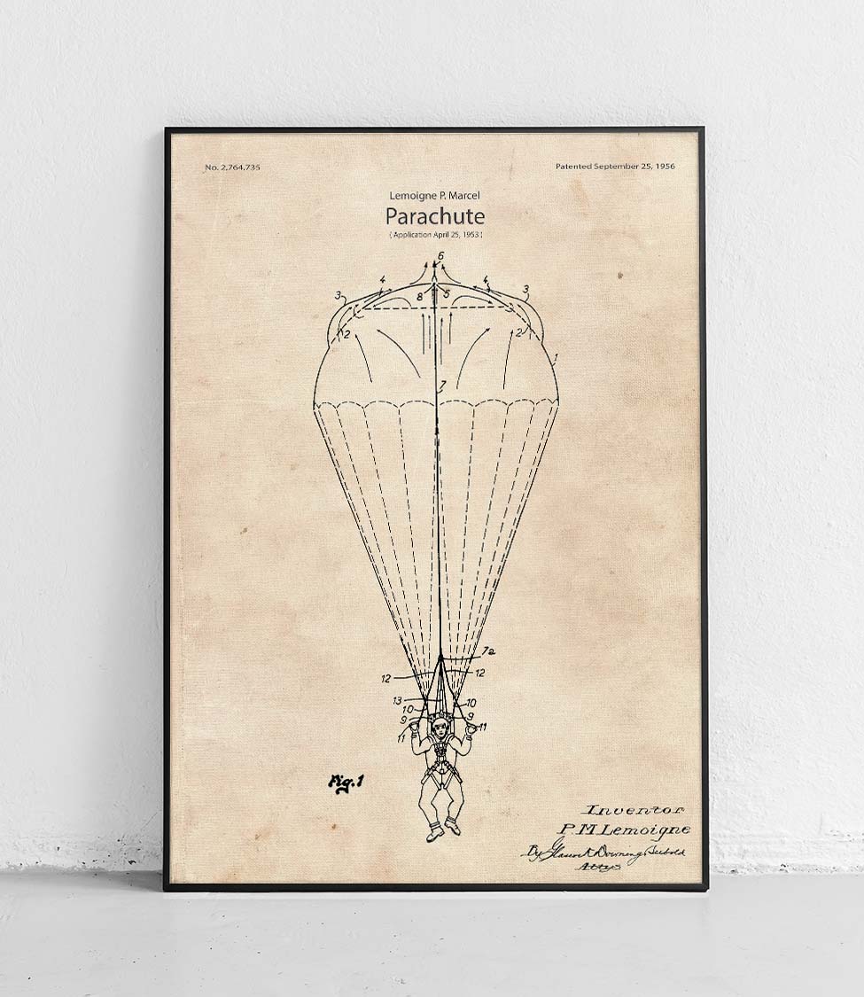 Fallschirm – ein Poster mit einem klassischen Fallschirmdesign. Perfekt für Luftfahrt- und Militärbegeisterte. Perfekte Dekoration für ein Zimmer, Büro oder einen Sportclub.