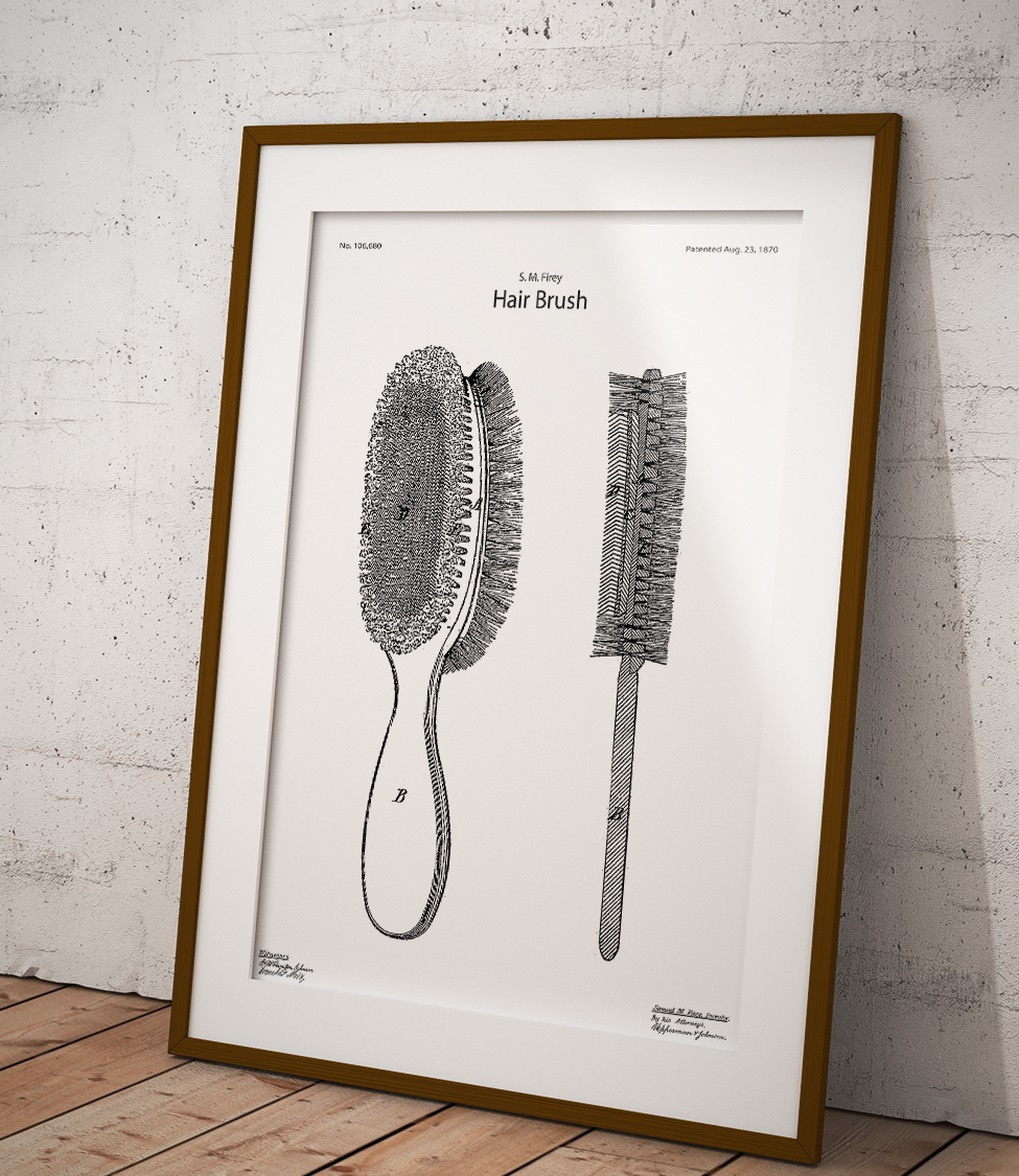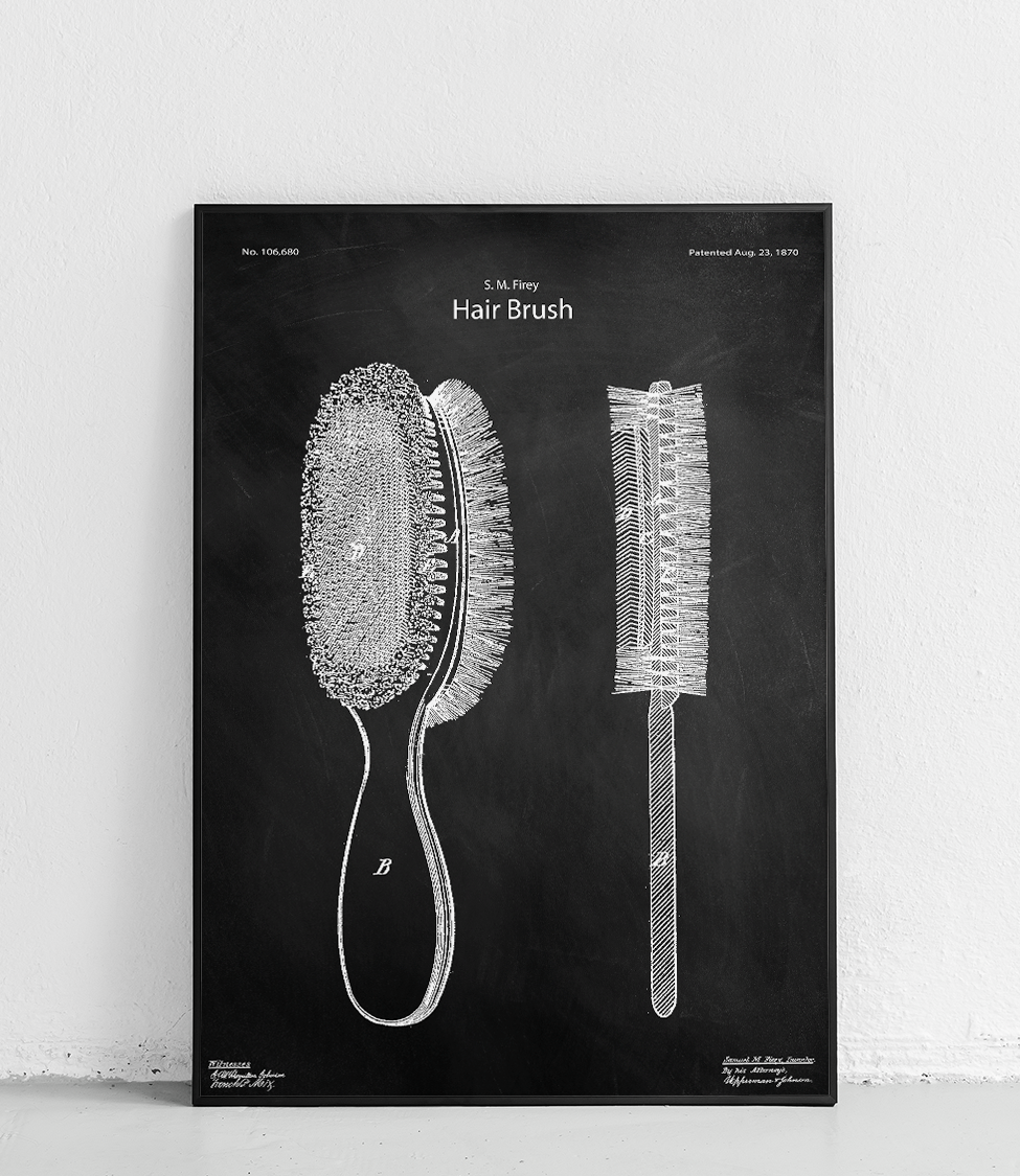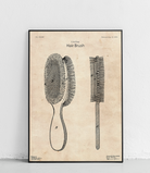Poster, das eine Haarbürste in stilvoller und minimalistischer Form darstellt. Perfekt für Liebhaber von Design und Schönheit.