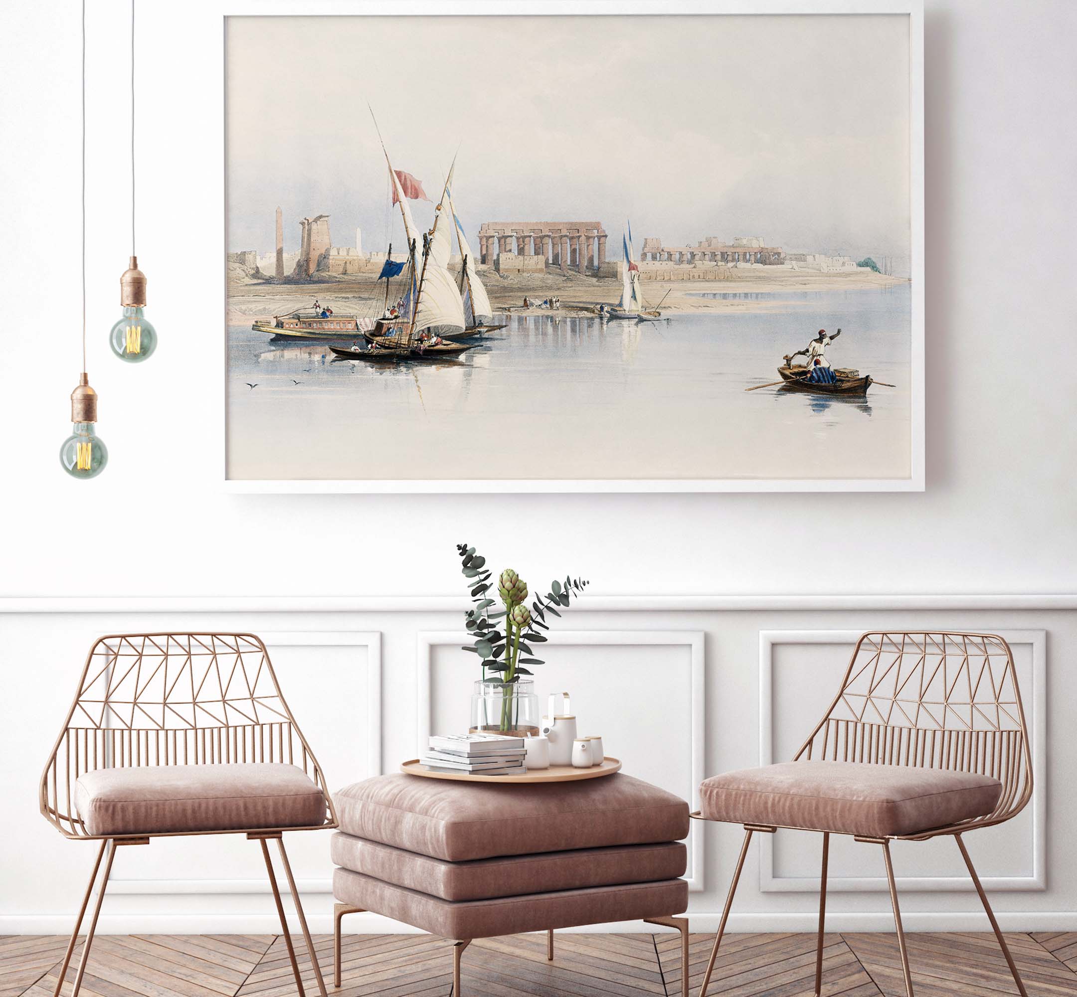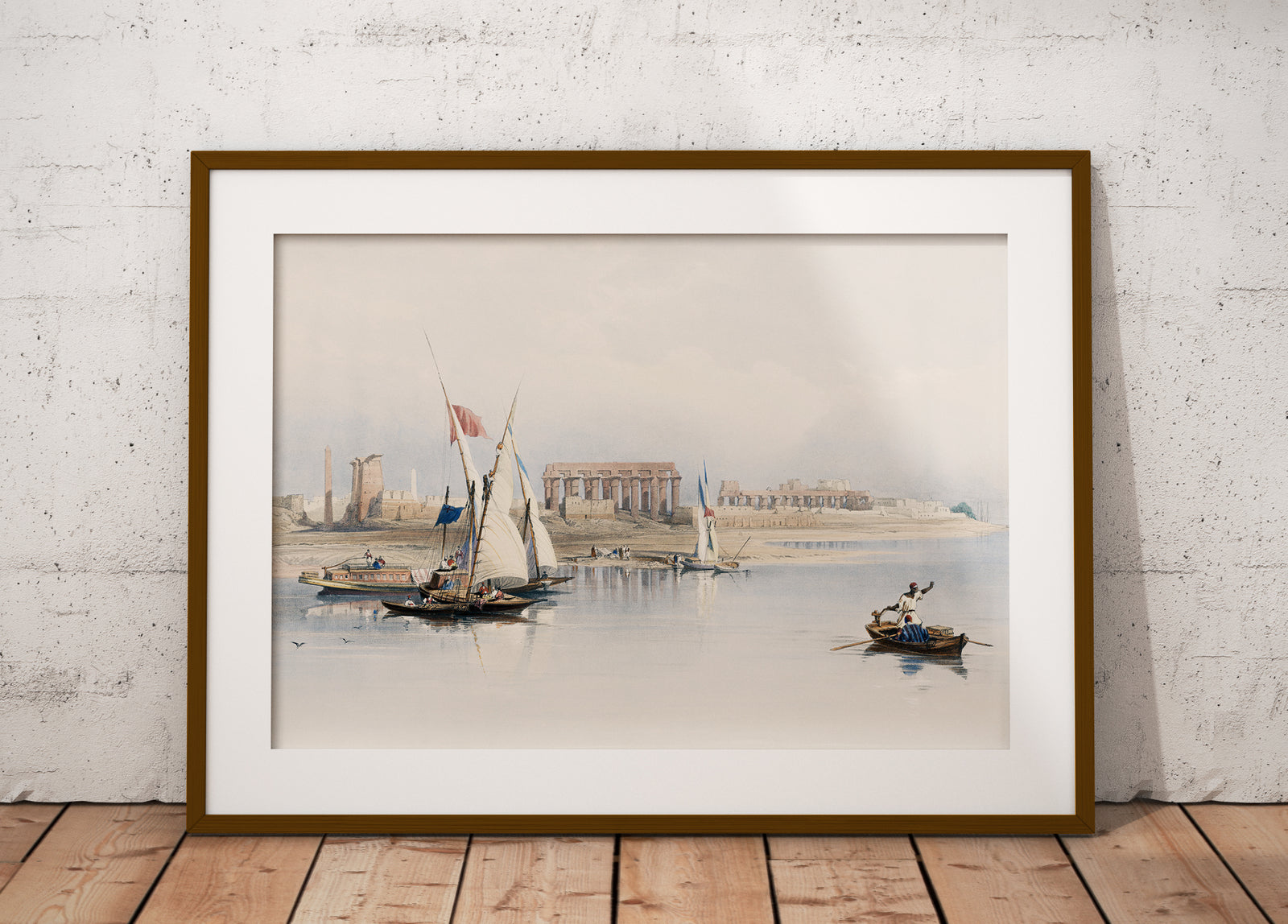 Die beigefügte Grafik zeigt „View of the Nile“ von David Roberts (1796–1864), einem schottischen orientalistischen Maler und Mitglied der Royal Academy of Arts.