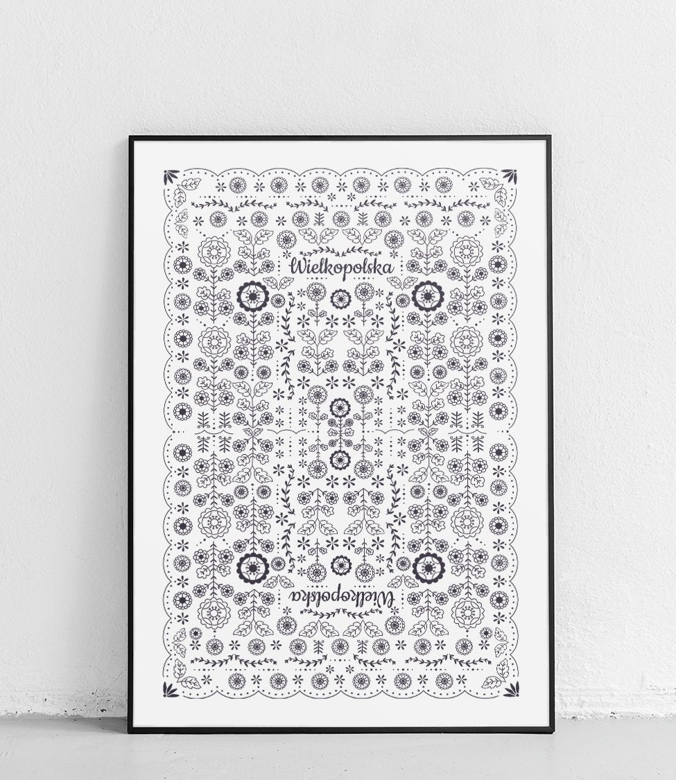 Dieses Poster zeigt ein Volksmuster aus Großpolen, das charakteristisch für die Szamotuły-Folklore ist.