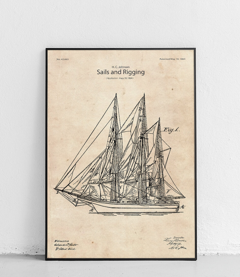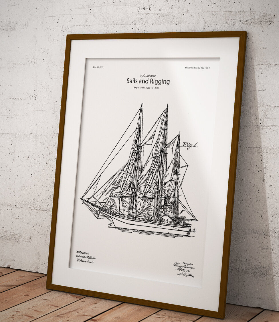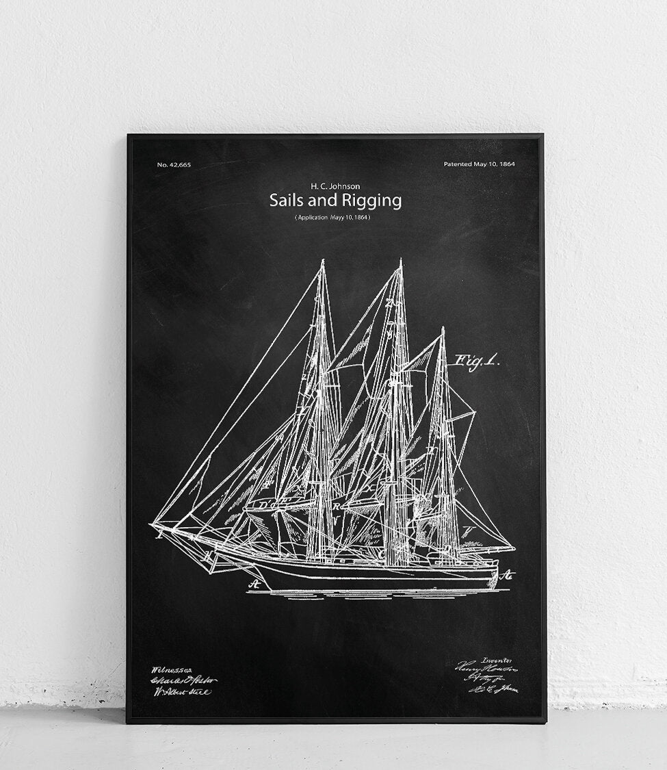 Ein Poster mit der Abbildung eines Segels und der Takelage, perfekt für Segelbegeisterte und Fans der technischen Geschichte.