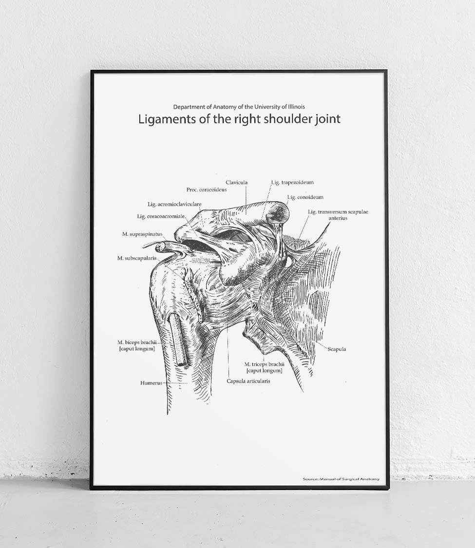 Ligaments of the right shoulder joint on a white background - poster