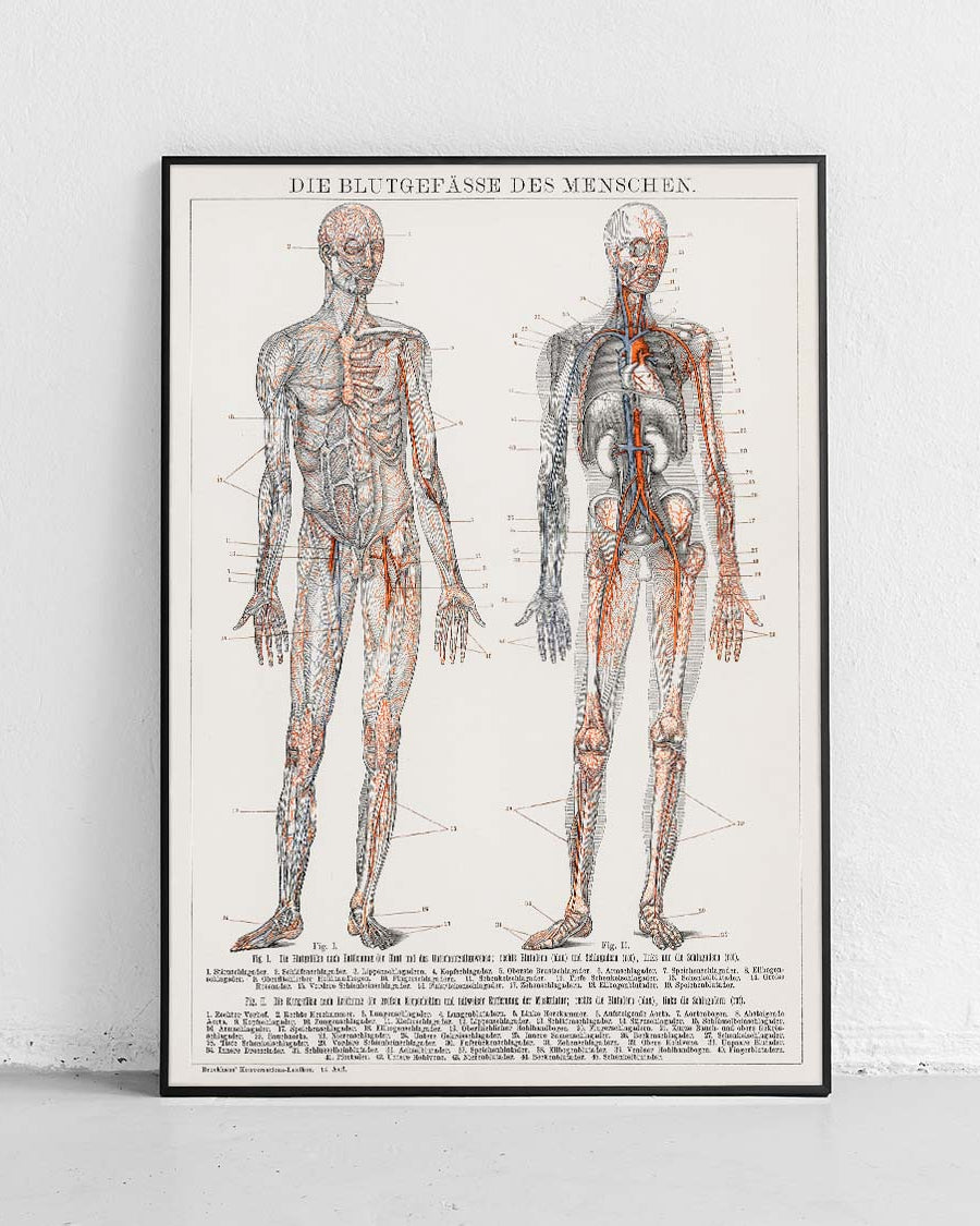 The "Anatomical" collection combines classic medical illustration with modern craftsmanship. Here you will find carefully copied and scanned illustrations depicting the spine, skull, and muscular system, among other things. The posters are based on anatomical textbooks overseen by the American Society of General Surgeons. Latin descriptions add a scientific touch.