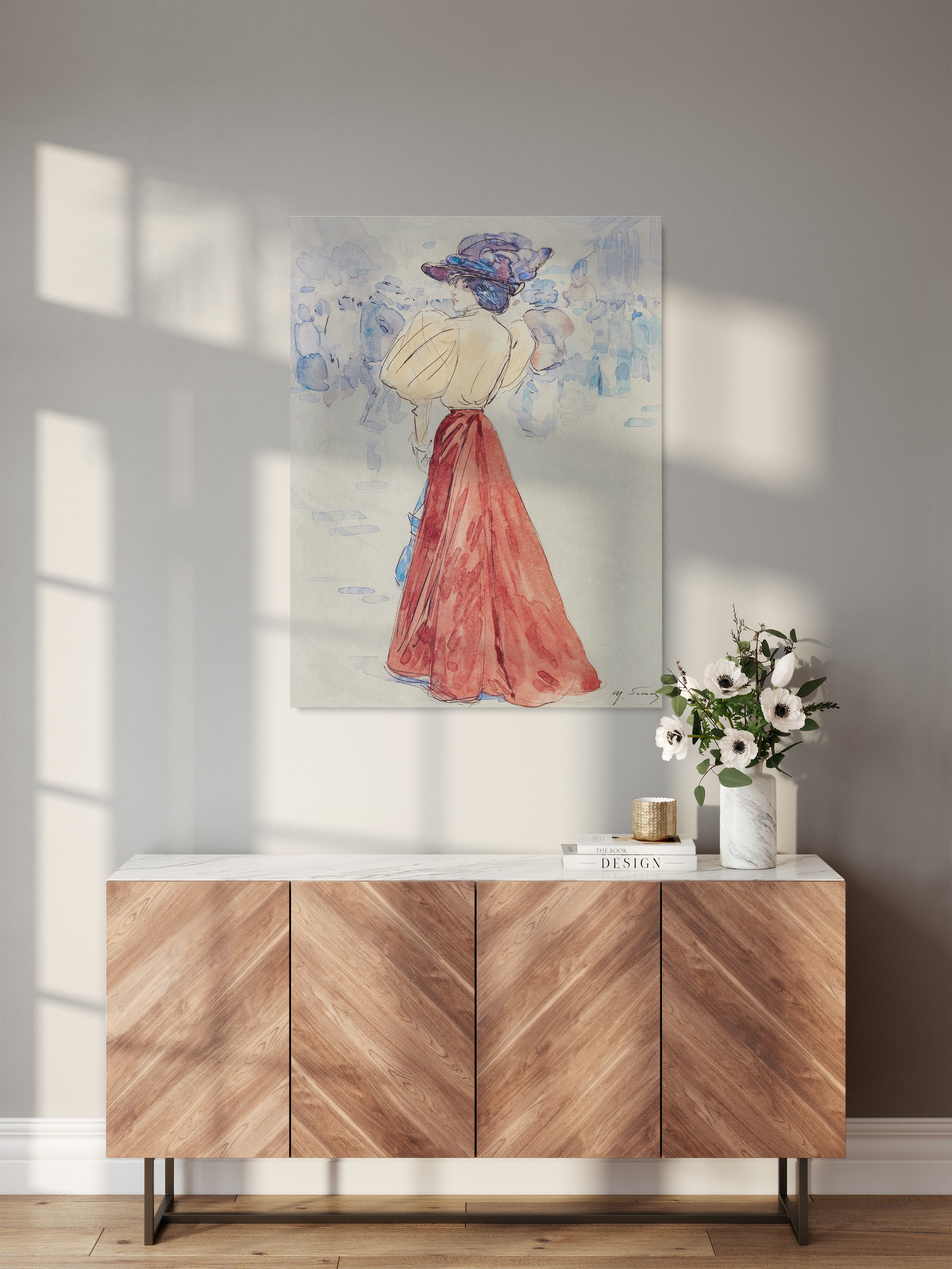 Dzięki swojej estetyce, "Elegancka z czerwoną spódnicą" wprowadza do wnętrza poczucie luksusu i elegancji. Jego styl doskonale wpisuje się w nowoczesne i klasyczne aranżacje, stanowiąc doskonały element dekoracyjny, który wzbogaci każde pomieszczenie. Obraz na płótnie nie tylko zdobi, ale również inspiruje do tworzenia pięknych przestrzeni, w których każdy szczegół ma znaczenie.