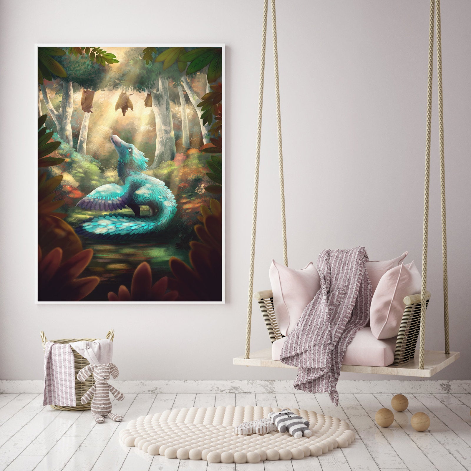 This poster depicts Velociraptor - a genus of small theropod dinosaurs from the Dromaeosauridae family. It was a bipedal predator that inhabited what is now Mongolia during the late Cretaceous Period, 83 to 70 million years ago.