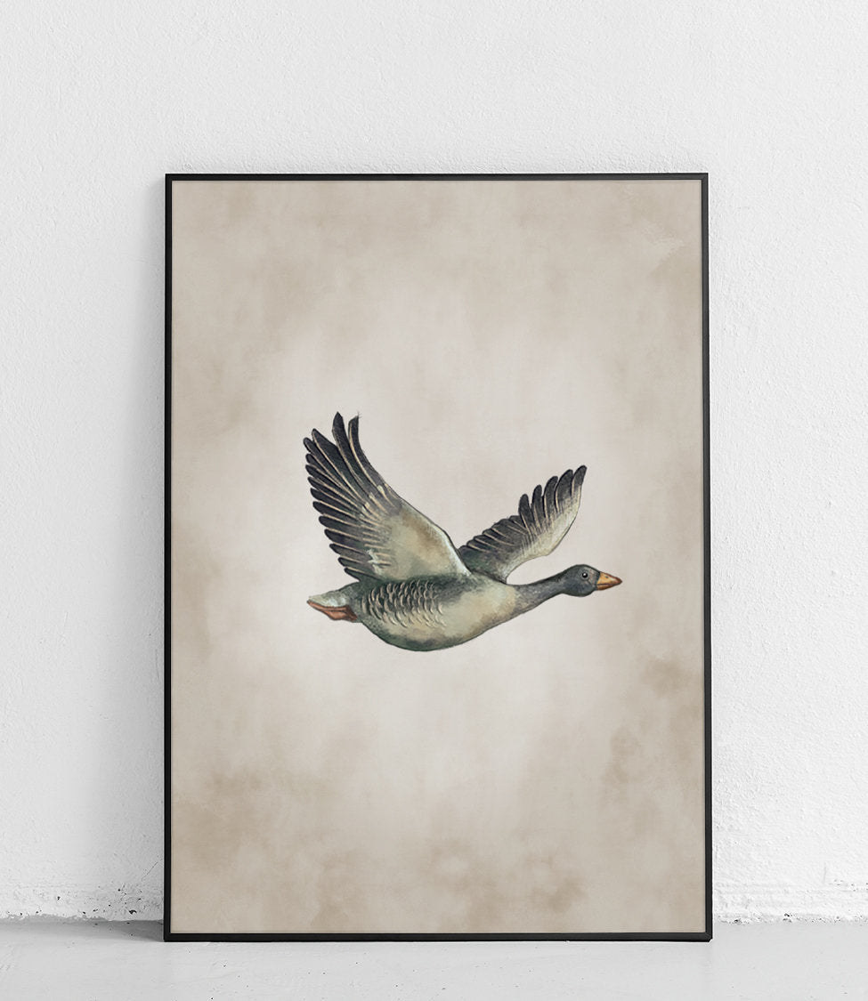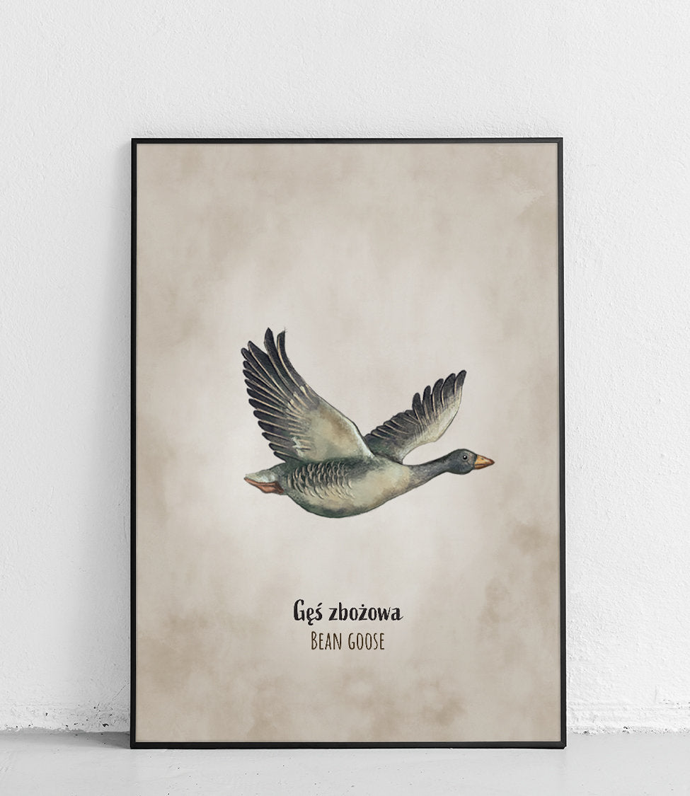 The poster depicts a bean goose and is one of 30 species of Polish animals featured on the children's map of Poland.