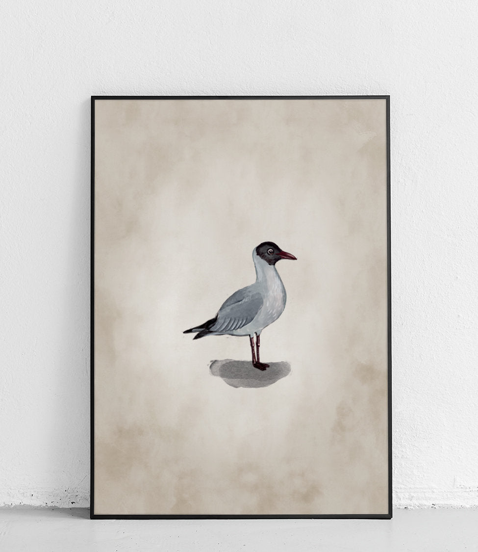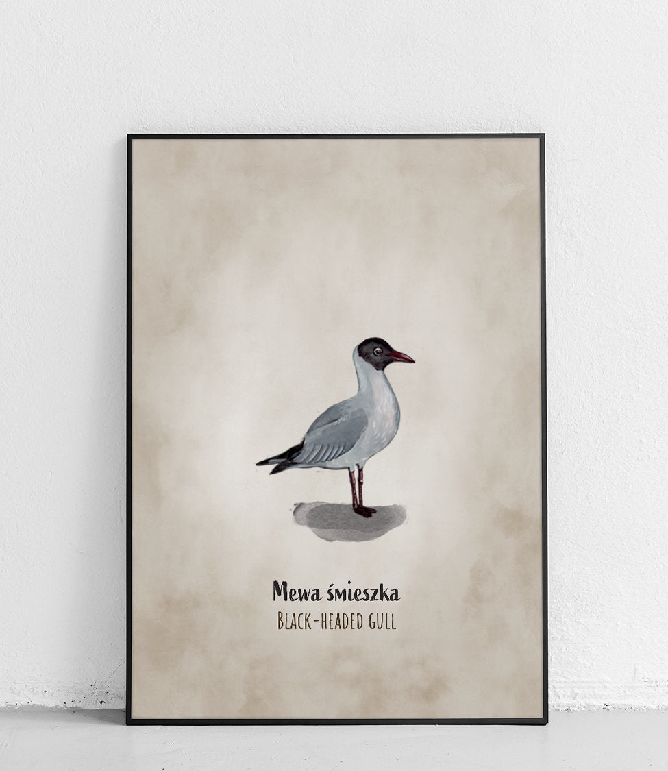 The poster depicts a black-headed gull and is one of 30 species of Polish animals featured on a children's map of Poland.