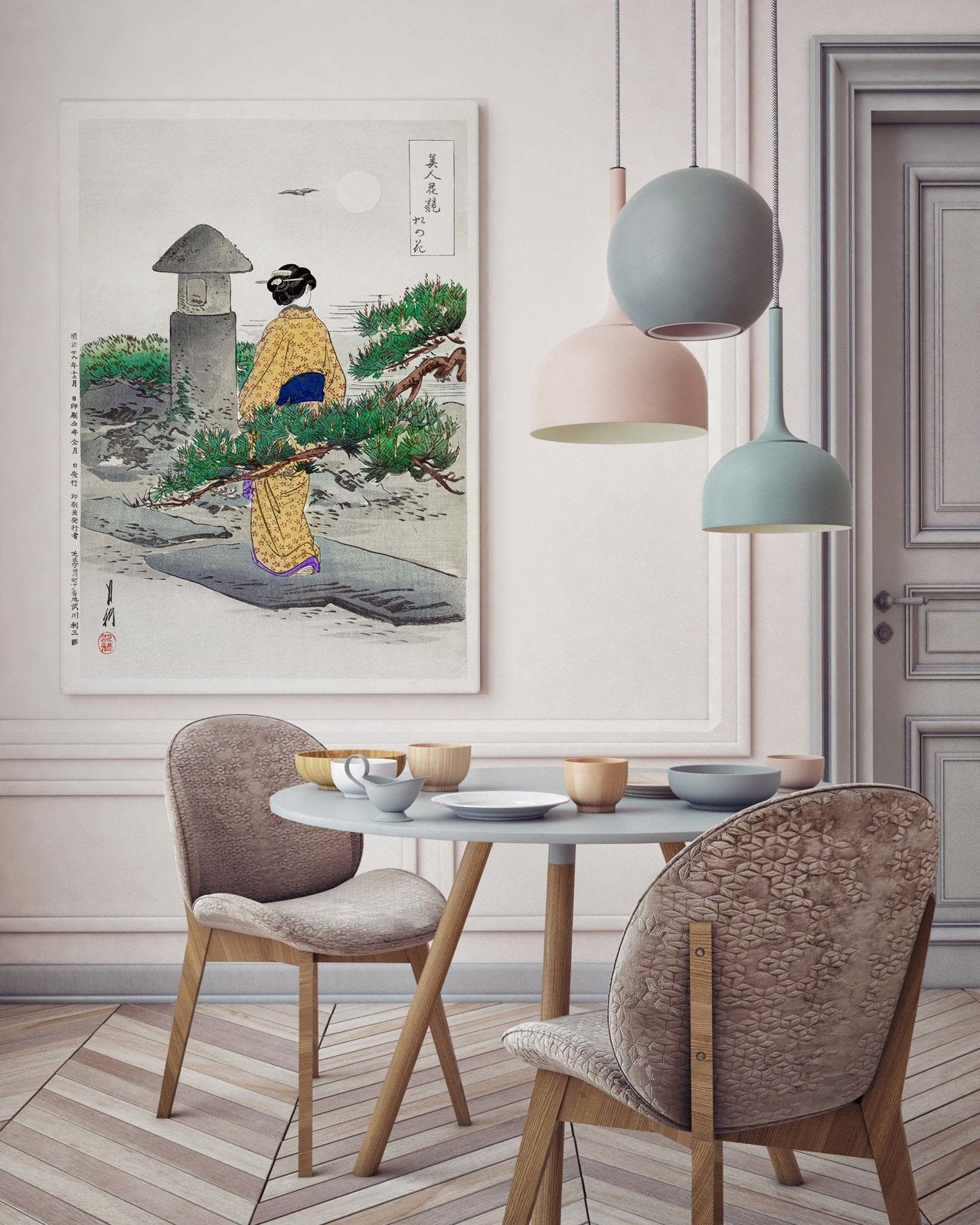 Illustration "Full Moon and Pine Tree" by Ogata Gekkō, a Japanese artist best known as a painter and creator of ukiyo-e woodblock prints. He was a self-taught artist, the recipient of numerous national and international awards, and one of the first Japanese artists to gain an international audience.