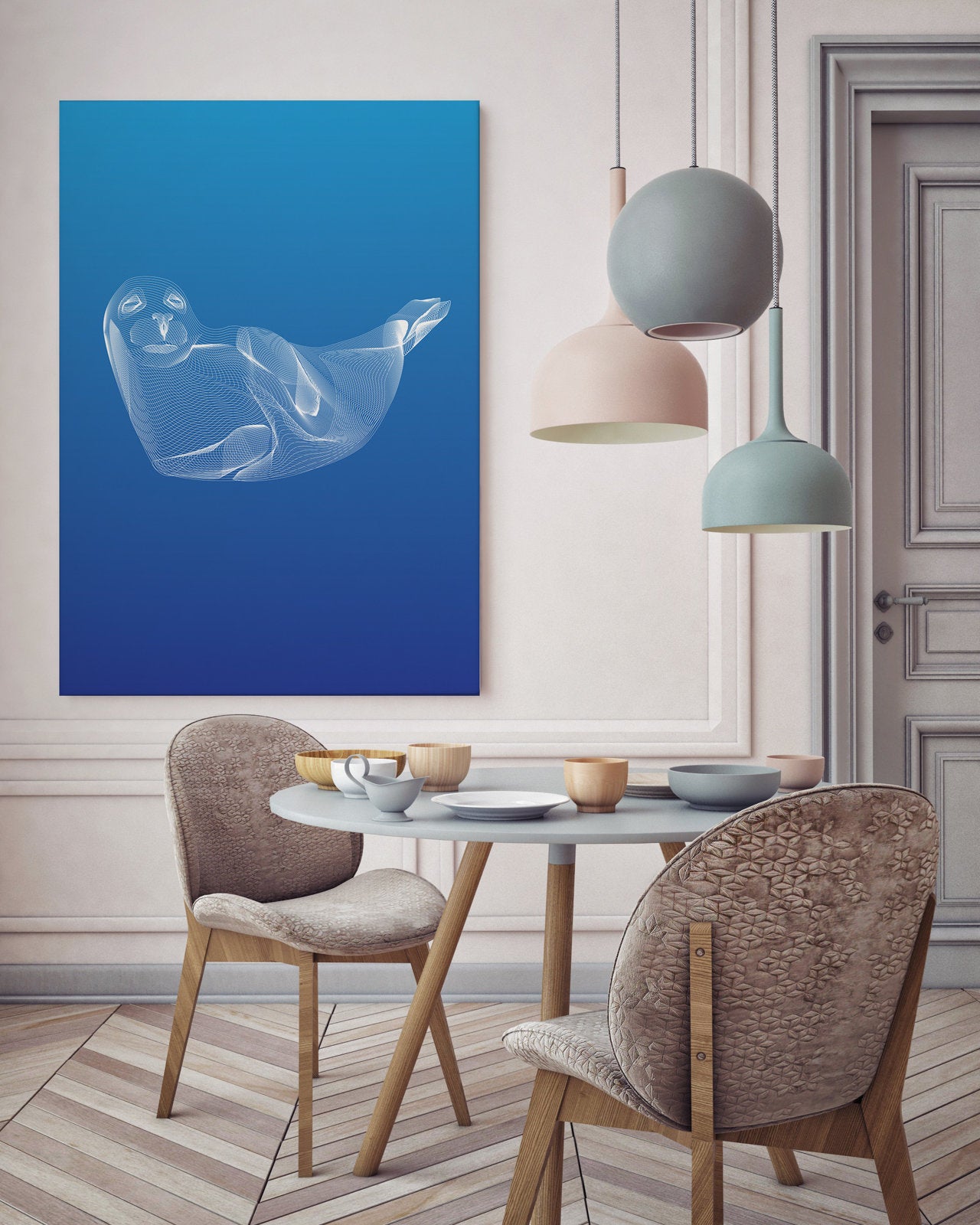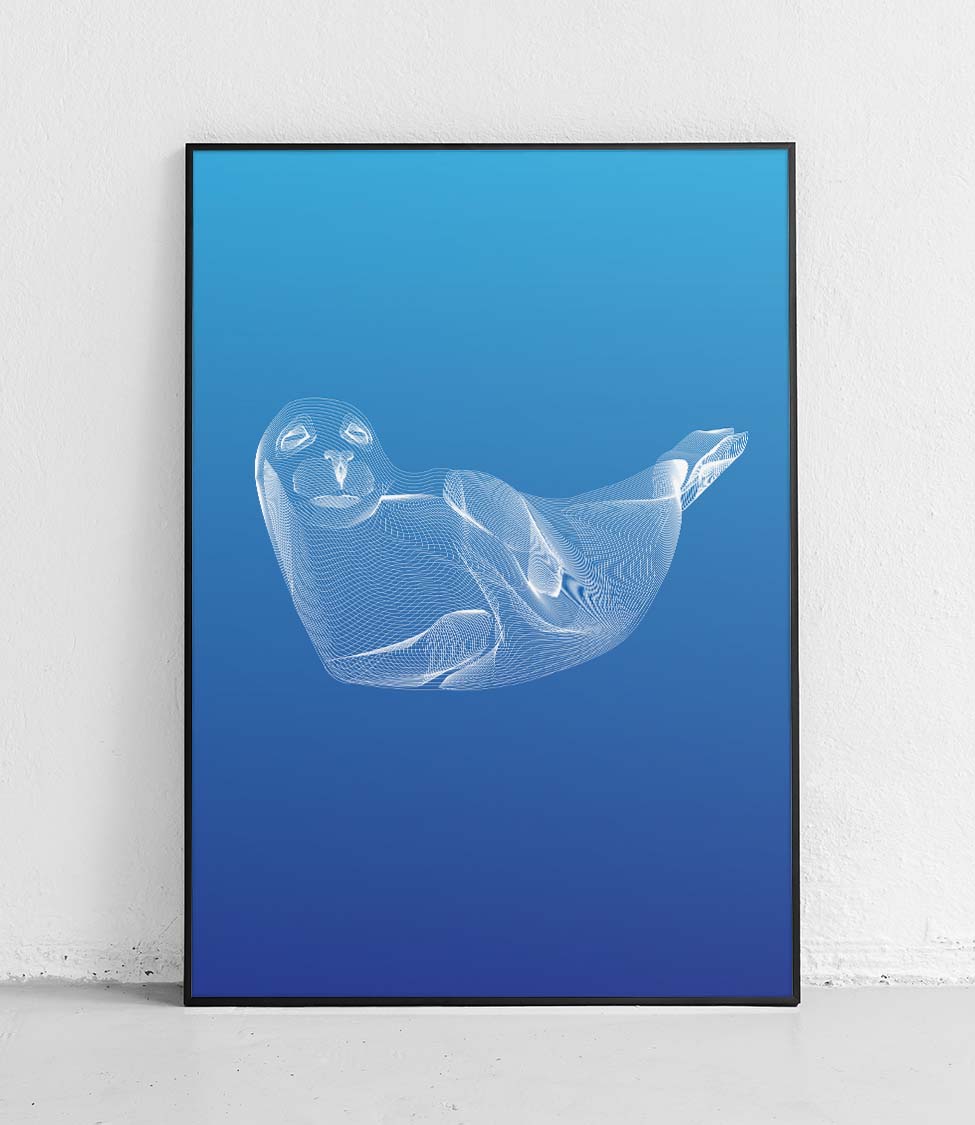 Grey seal - white on a blue background