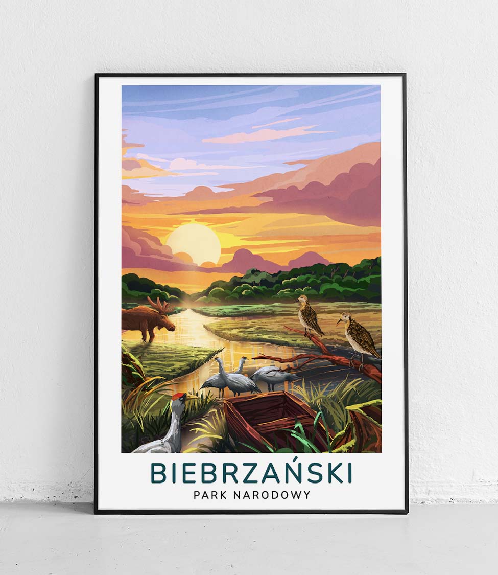 The Biebrza National Park poster is part of our new POLISH NATIONAL PARKS poster series. This unique series presents the most beautiful and picturesque corners of the country. Our tourist posters showcase the most popular areas of beautiful Poland.